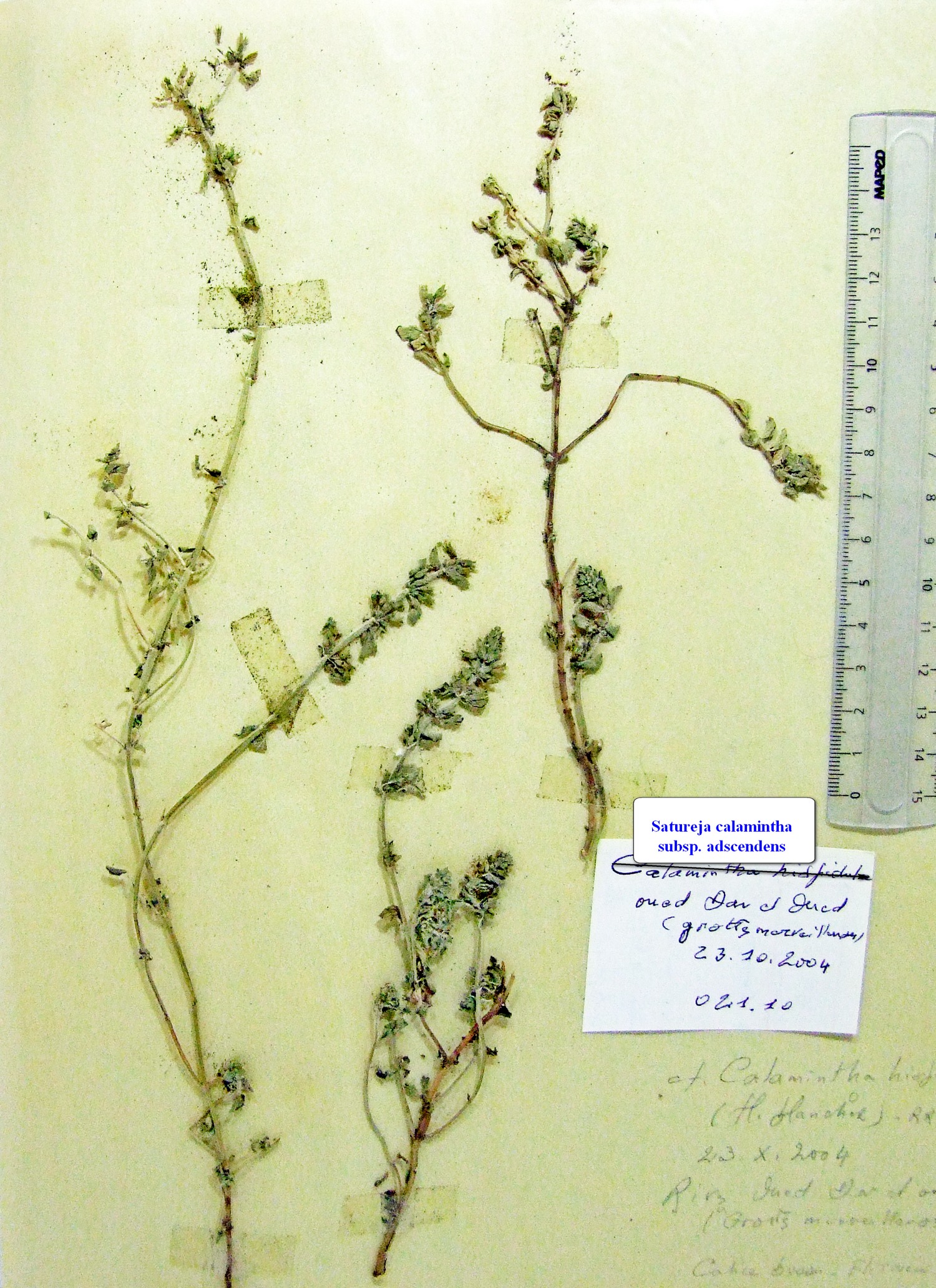 | 021_10 | Labiatae Calamintha ascendens Jord. | x=5.497411 y=36.673464 z=215 m | oued Dar el oued Jijel 2004-10-23 |  |