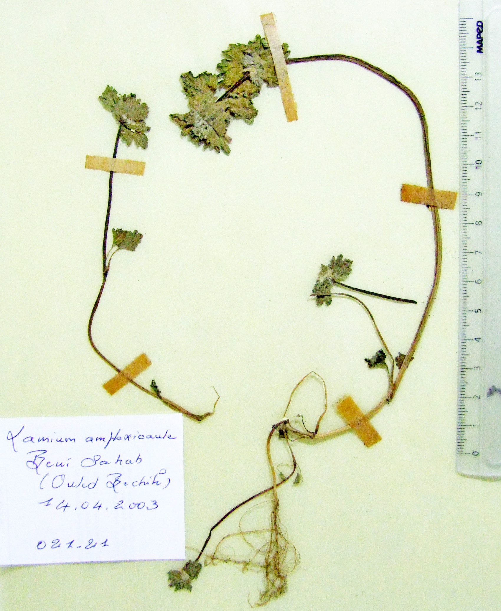 | 029_30 | Labiatae Lamium amplexicaule L. | x=7.349556 y=35.235972 z=1284 m | Babar 2 Khenchela 2009-02-28 | |