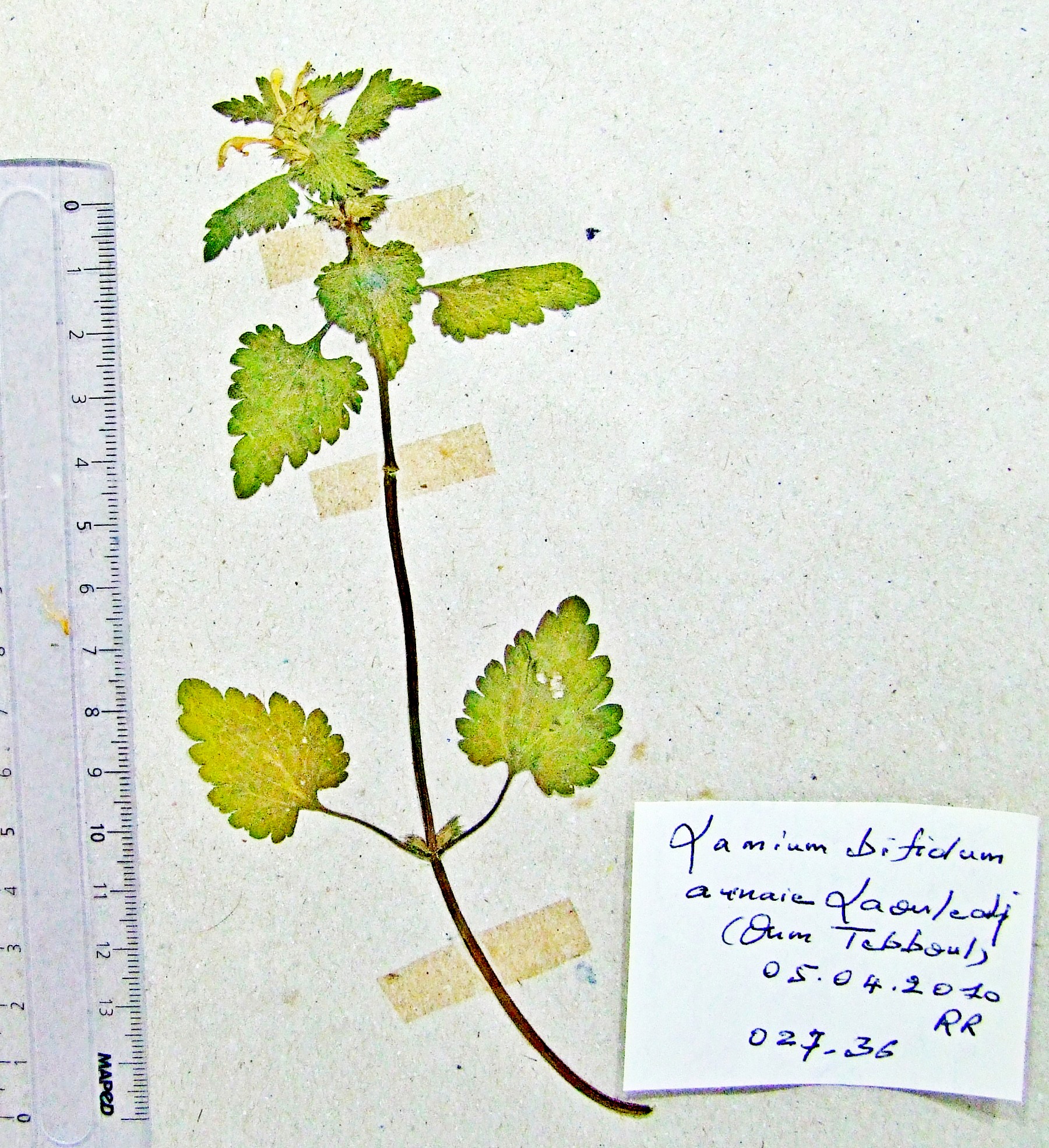 | 027_36 | Labiatae Lamium bifidum Cirillo | x=8.543889 y=36.893611 z=NA | aunaie Laouledj El Tarf 2010-04-05 |  |