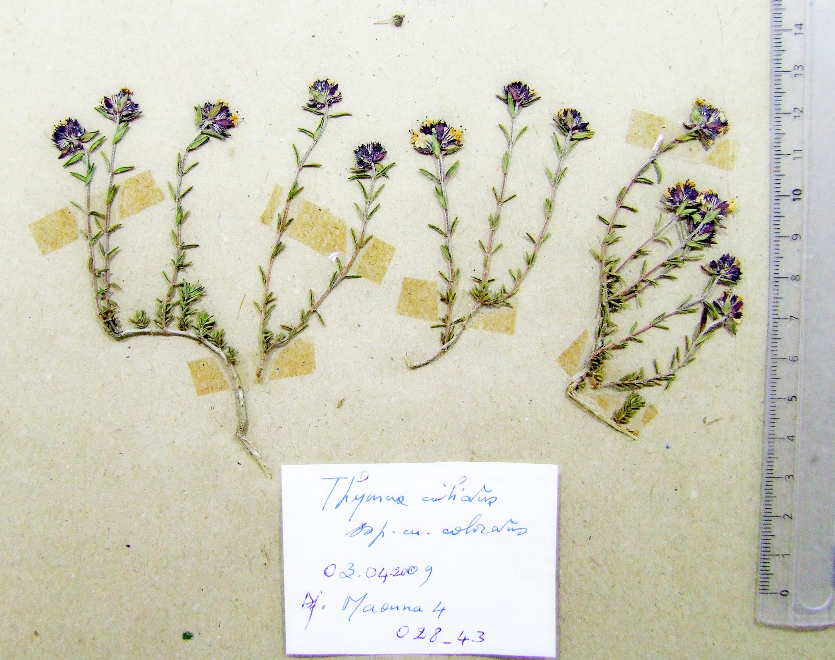 | 028_43 | Labiatae Thymus munbyanus Boiss. & Reuter subsp. coloratus | x=7.422278 y=36.361556 z=877 m | djebel Maouna 3 Guelma 2009-04-03 |  |