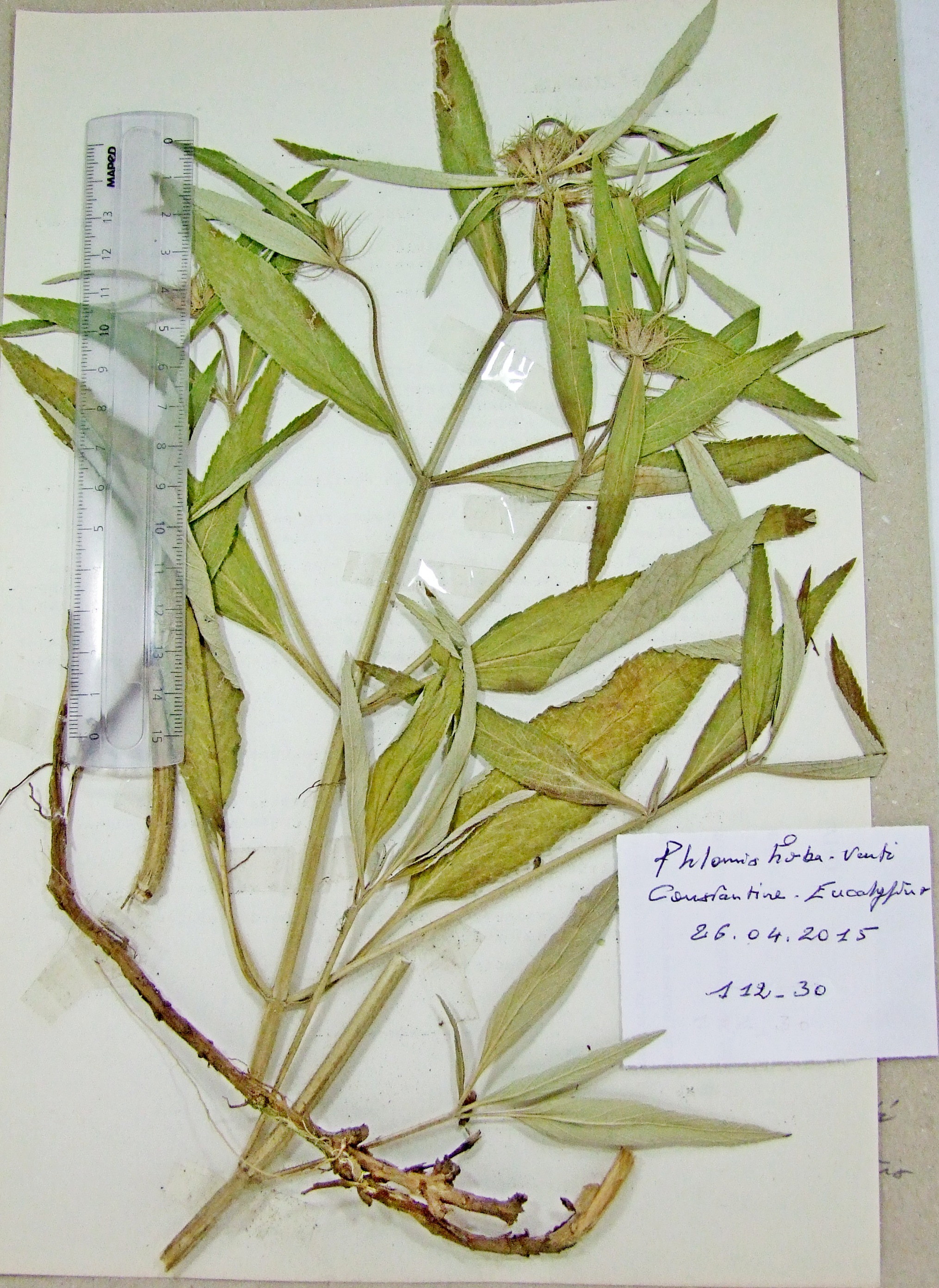 | 120_25 | Labiatae Phlomis bovei de Noé | x=7.791611 y=36.249972 z=716 m | falaise Khemissa Souk Ahras 2015-05-01 |  |