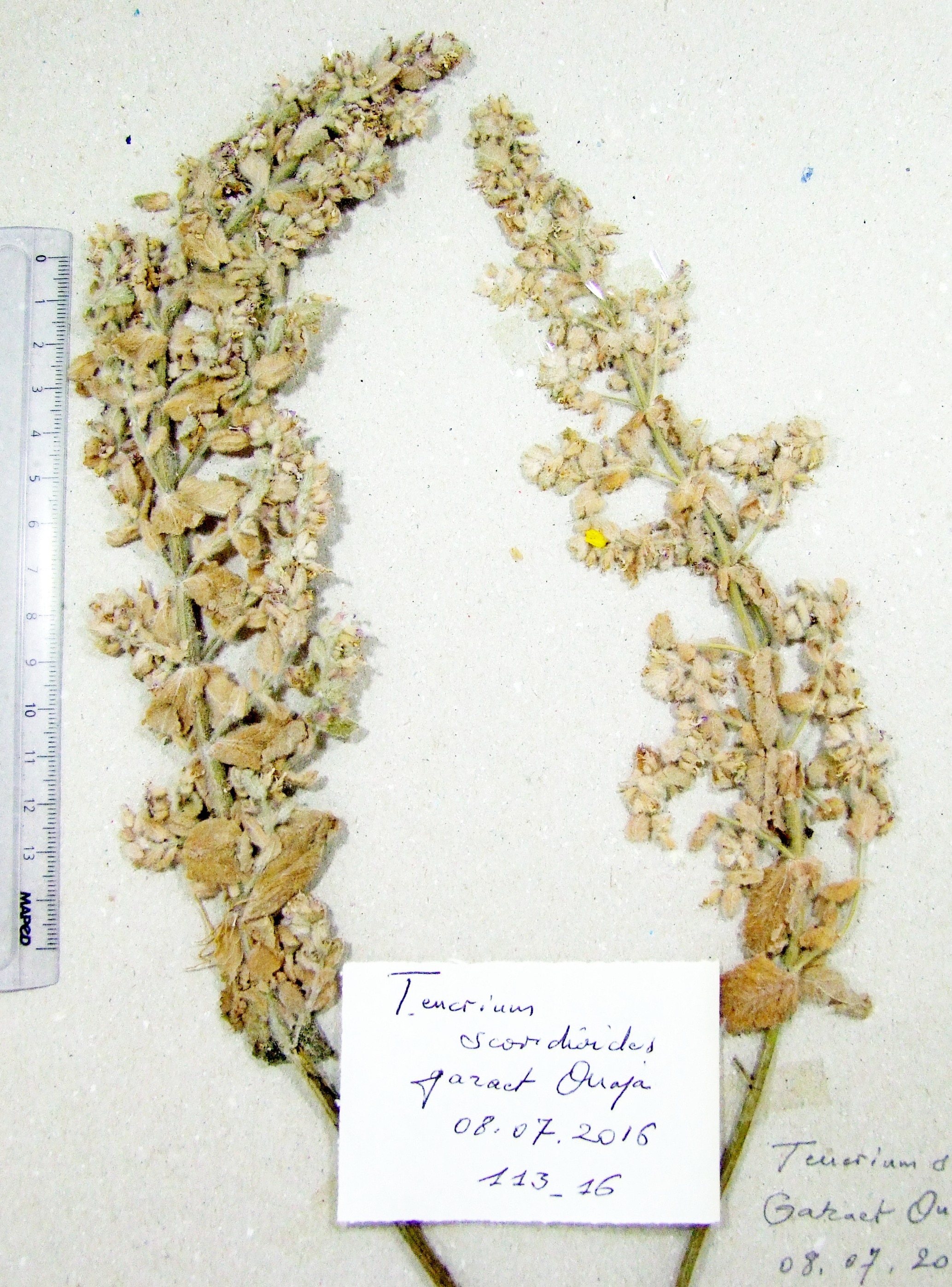 | 113_16 | Labiatae Teucrium scordium L. subsp. scordioides | x=7.315258 y=36.888494 z=12 m | garaet Ouajaa Skikda 2016-07-08 |  |