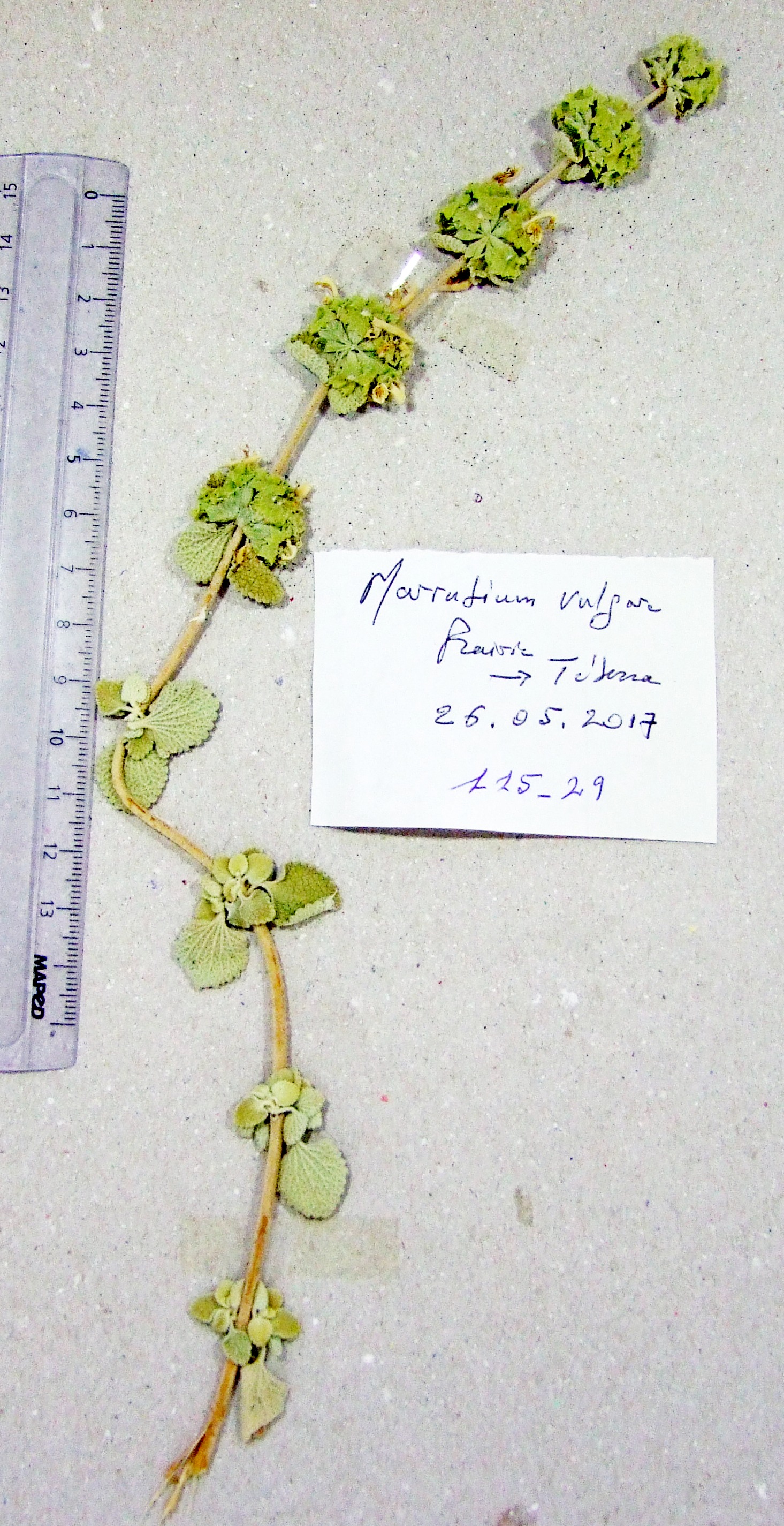 | 115_29 | Labiatae Marrubium vulgare L. | x=8.198456 y=35.479158 z=1061 m | Tébessa pinède E (prairie) Tébessa 2017-05-26 |  |