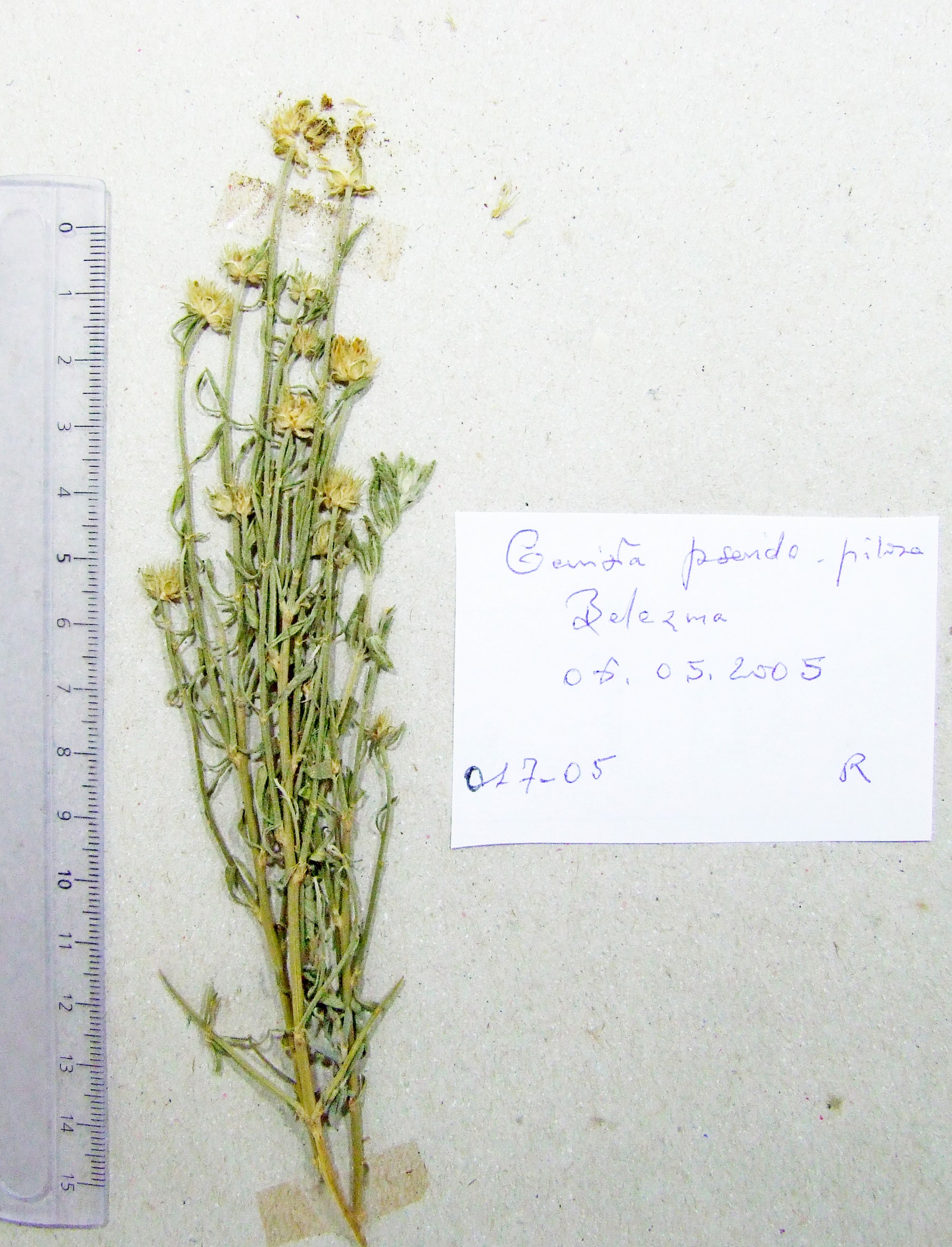 | 017_05 | Leguminosae Genista pseudo-pilosa Coss. | x=6.268694 y=35.680222 z=1152 m | Belezma 1 Batna 2005-05-06 |  |