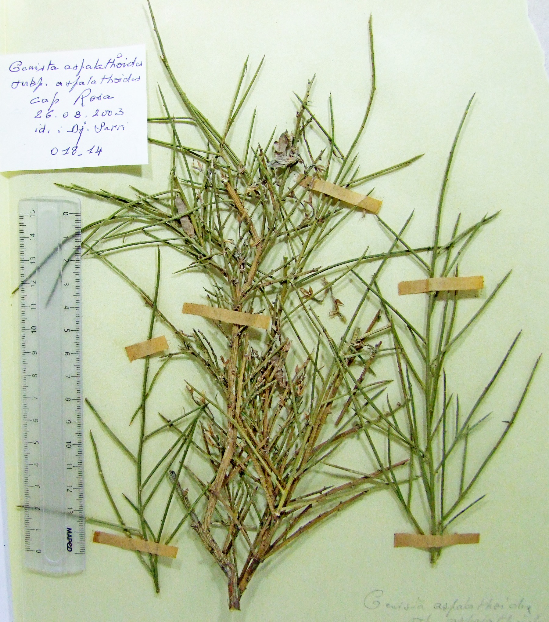 | 018_14 | Leguminosae Genista aspalathoides Lam. subsp. aspalathoides M. | x=8.236522 y=36.979114 z=107 m | cap Rosa El Tarf 2003-08-26 |  |