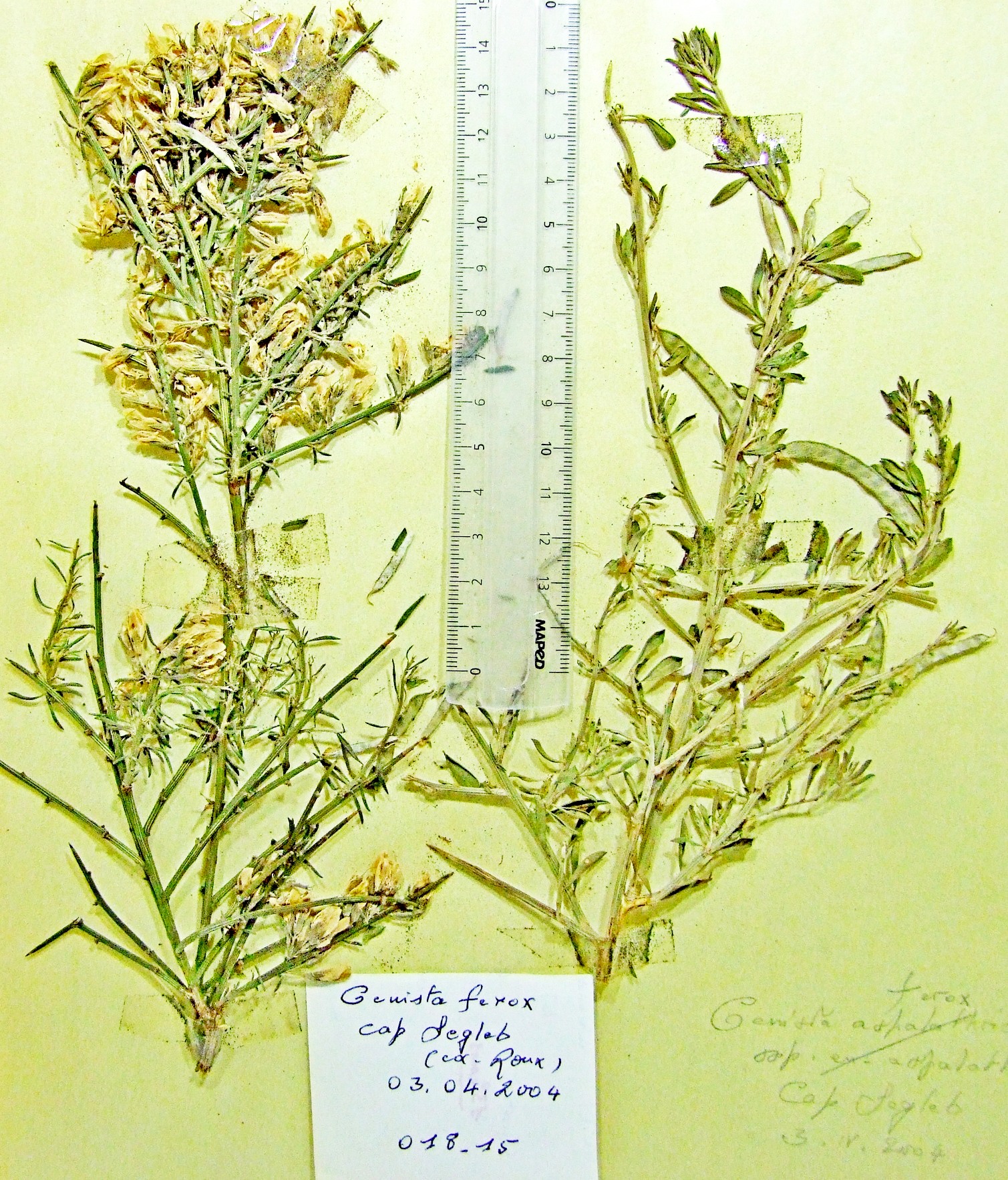 | 018_15 | Leguminosae Genista ferox (Poiret) Dum. Cours | x=8.612306 y=36.940861 z=98 m | cap Segleb 2 El Tarf 2004-04-03 |  |