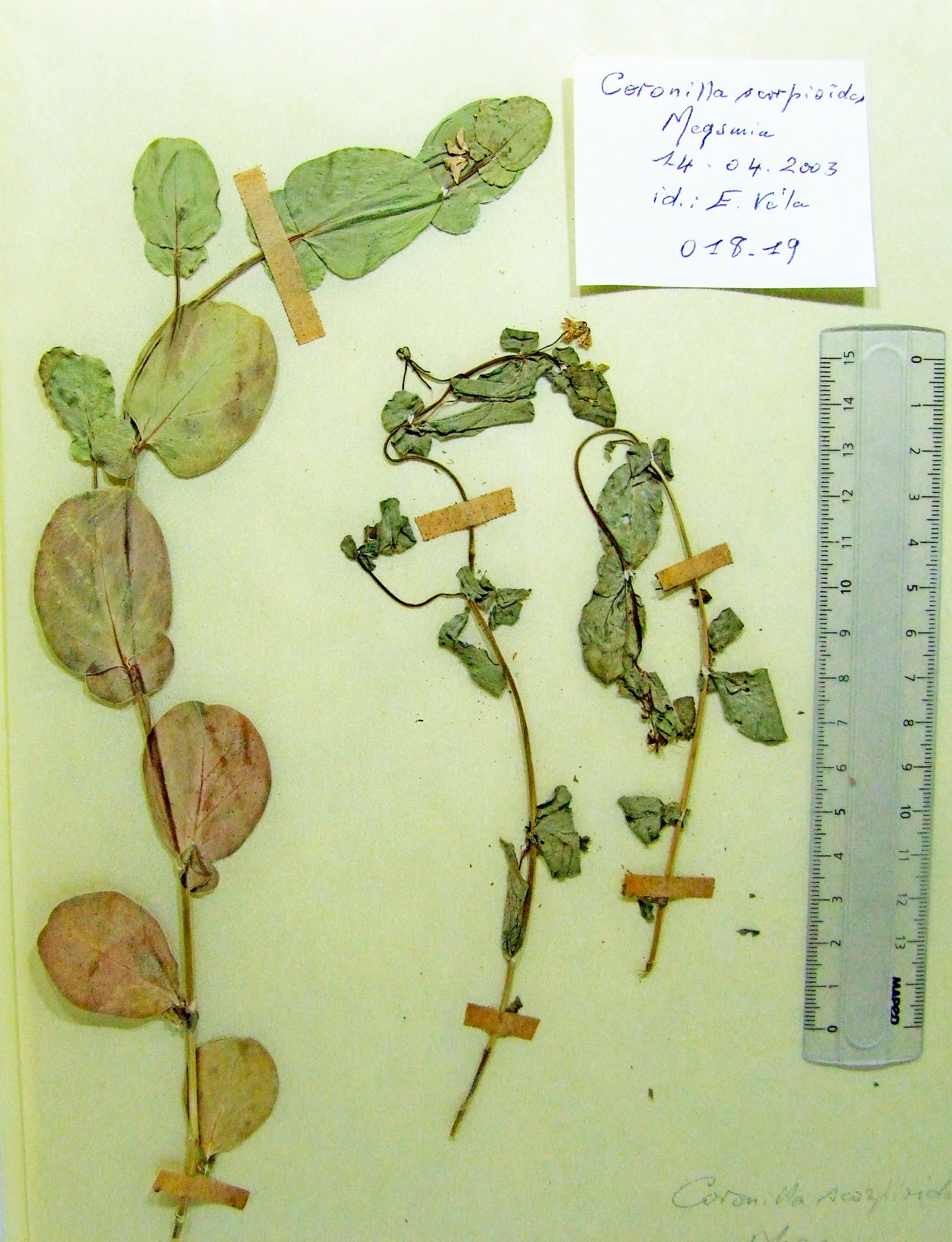 | 018_19 | Leguminosae Coronilla scorpioides (L.) Koch | x=7.804806 y=36.469722 z=300 m | Megsmia 2 Guelma 2003-04-14 |  |