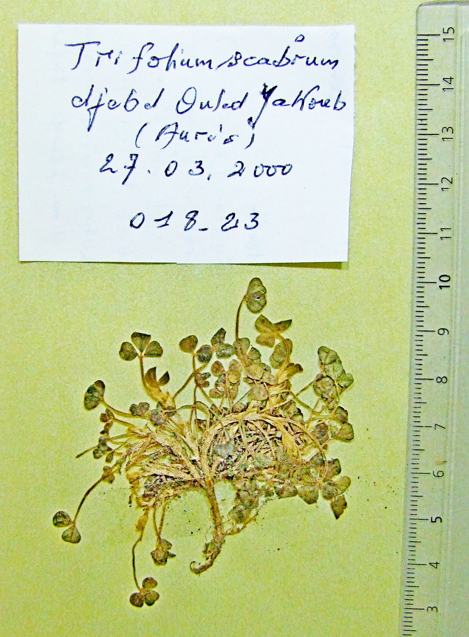 | 018_23 | Leguminosae Trifolium scabrum L. | x=6.980394 y=35.457664 z=1008 m | djebel Ouled Yakoub Khenchela 2000-03-27 |  |