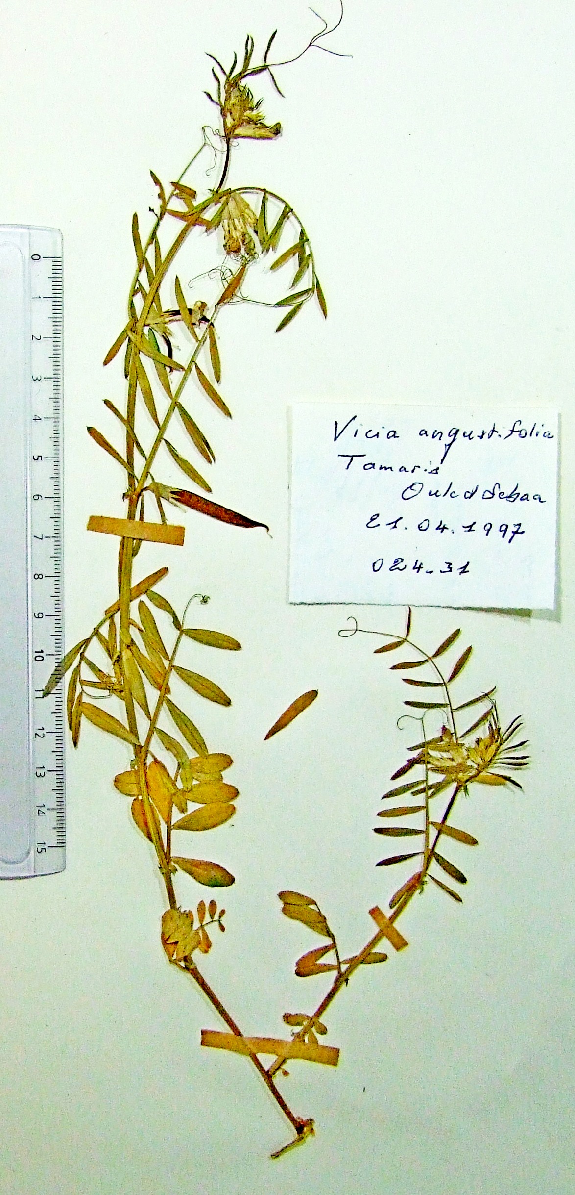 | 074_04 | Leguminosae Vicia benghalensis L. subsp. benghalensis | x=8.076303 y=36.852625 z=38 m | mare Tamaris El Tarf 1998-05-12 |  |