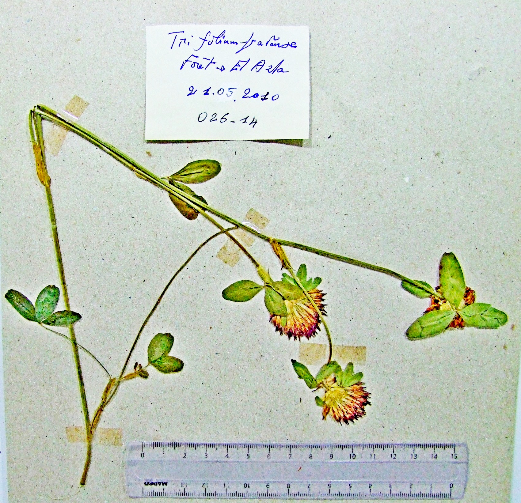 | 026_14 | Leguminosae Trifolium pratense L. | x=7.331694 y=36.996583 z=10 m | El Azla Skikda 2010-05-21 |  |