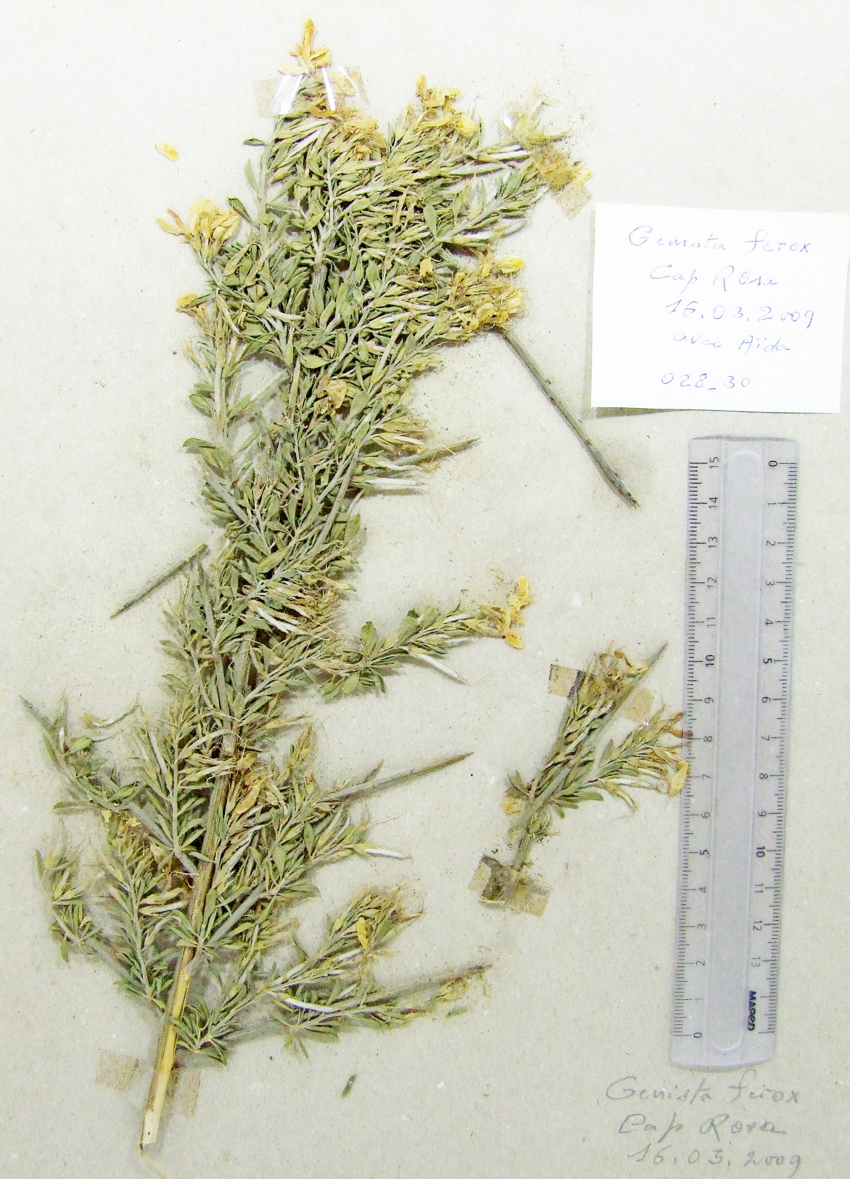 | 028_30 | Leguminosae Genista ferox (Poiret) Dum. Cours | x=8.236522 y=36.979114 z=107 m | cap Rosa El Tarf 2009-03-16 |  |