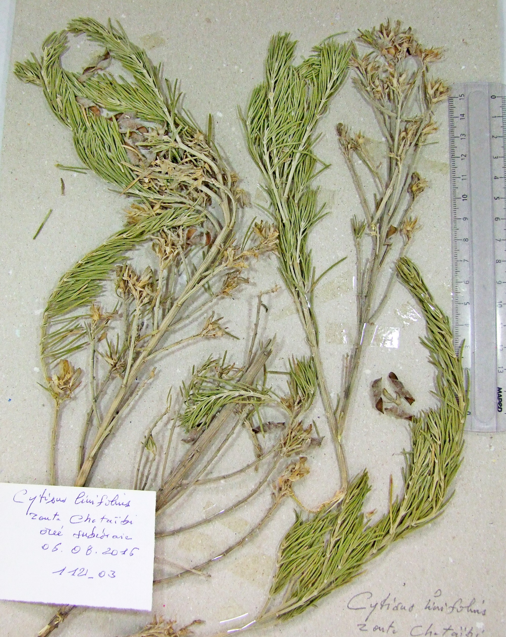 | 014_34 | Leguminosae Genista ferox (Poiret) Dum. Cours | x=7.780444 y=36.962333 z=64 m | maquis cap de Garde Annaba 2005-05-07 | |