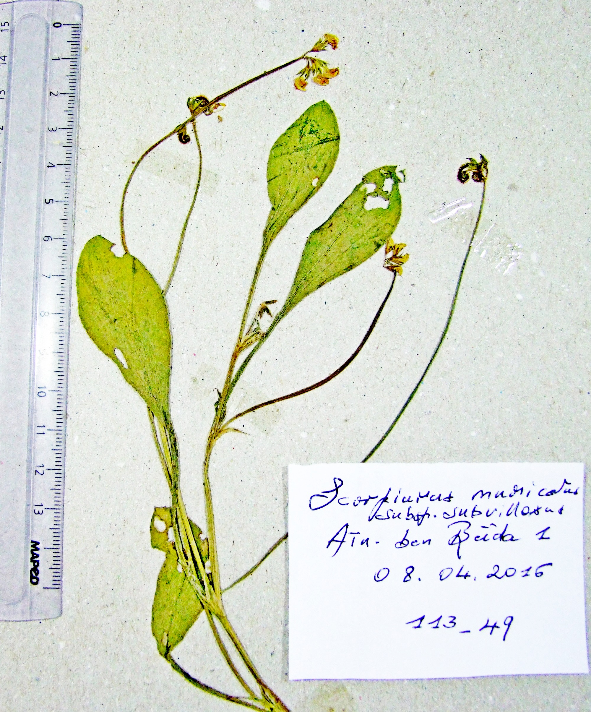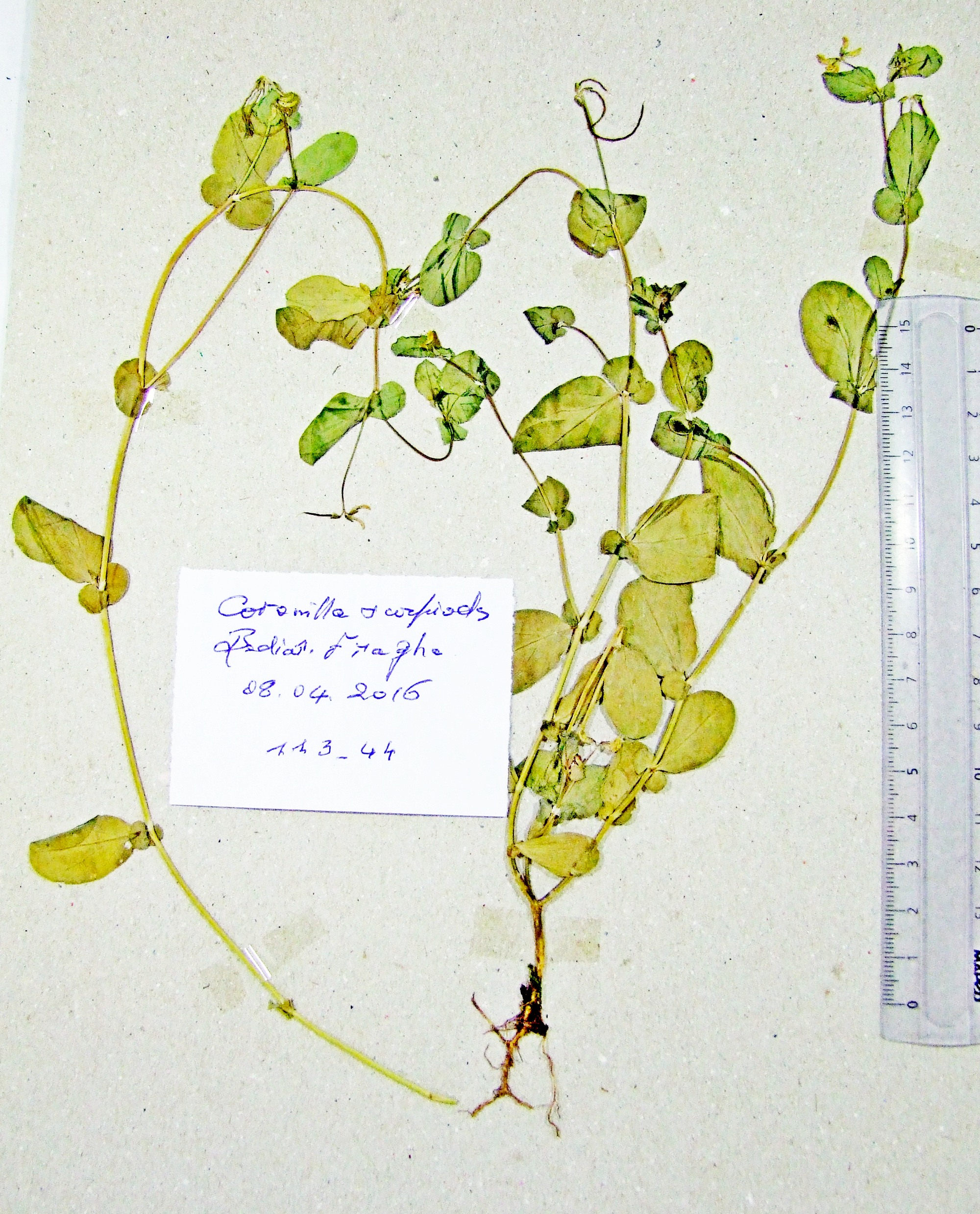 | 113_44 | Leguminosae Coronilla scorpioides (L.) Koch | x=7.612111 y=36.432467 z=145 m | Bediar_Fragha (route Nador) Guelma 2016-04-08 |  |