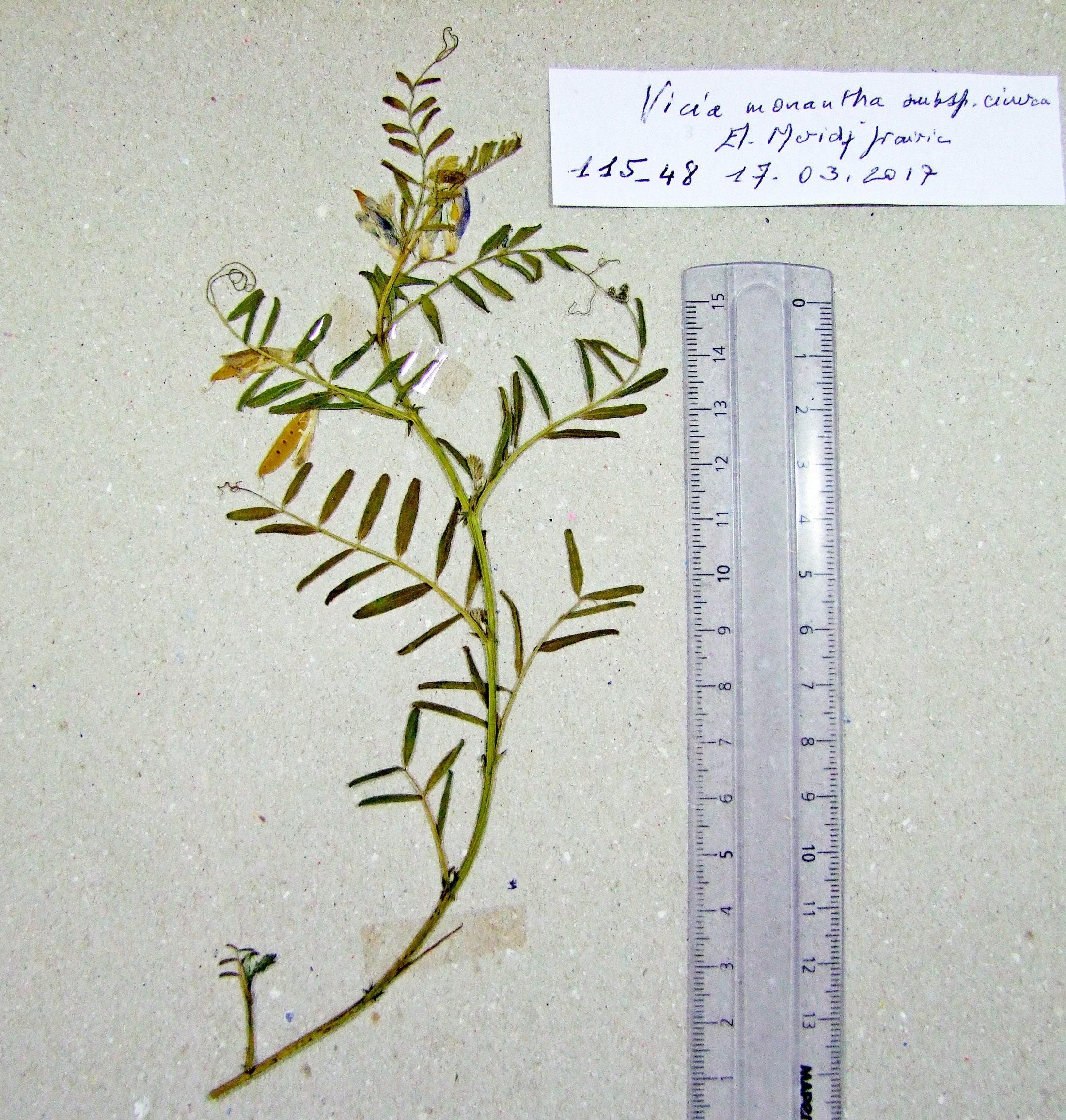 | 115_48 | Leguminosae Vicia monantha Retz subsp. monantha | x=8.199614 y=35.793425 z=629 m | El Meridj (stations) Tébessa 2017-03-17 |  |