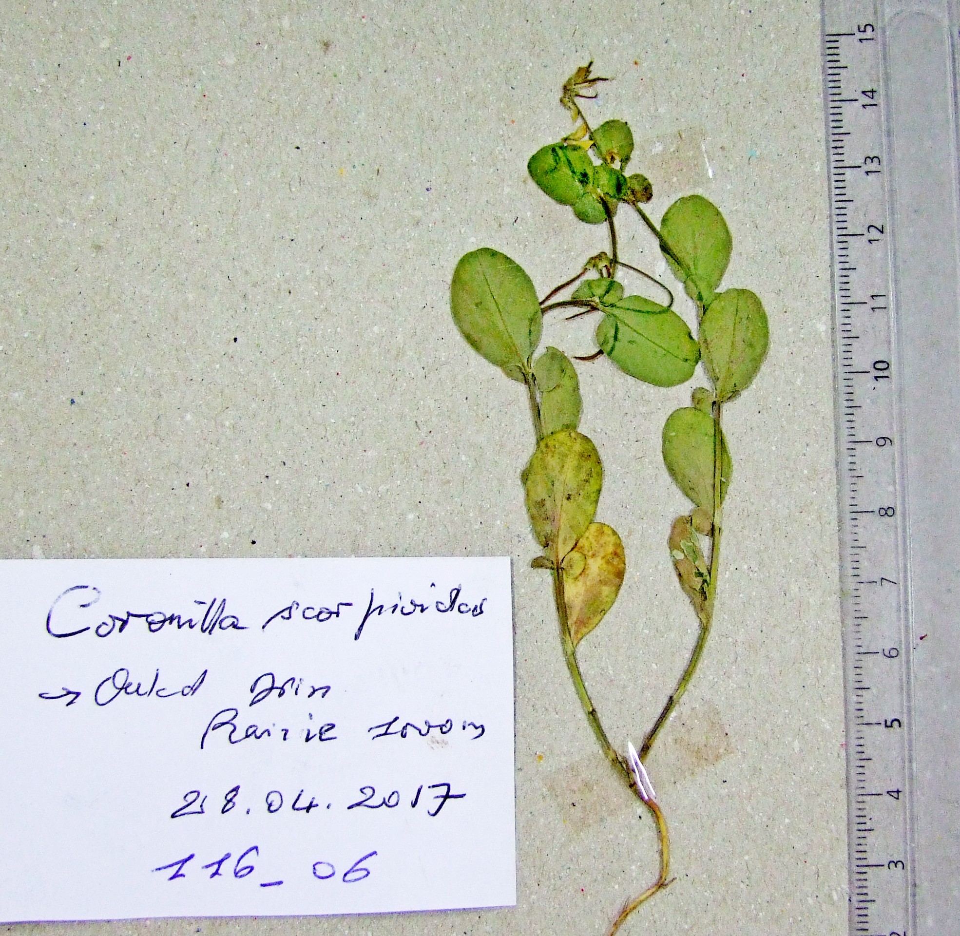 | ph017_46 | Leguminosae Coronilla scorpioides (L.) Koch | x=7.612111 y=36.432467 z=145 m | Bediar_Fragha (route Nador) Guelma 2016-04-08 |  |