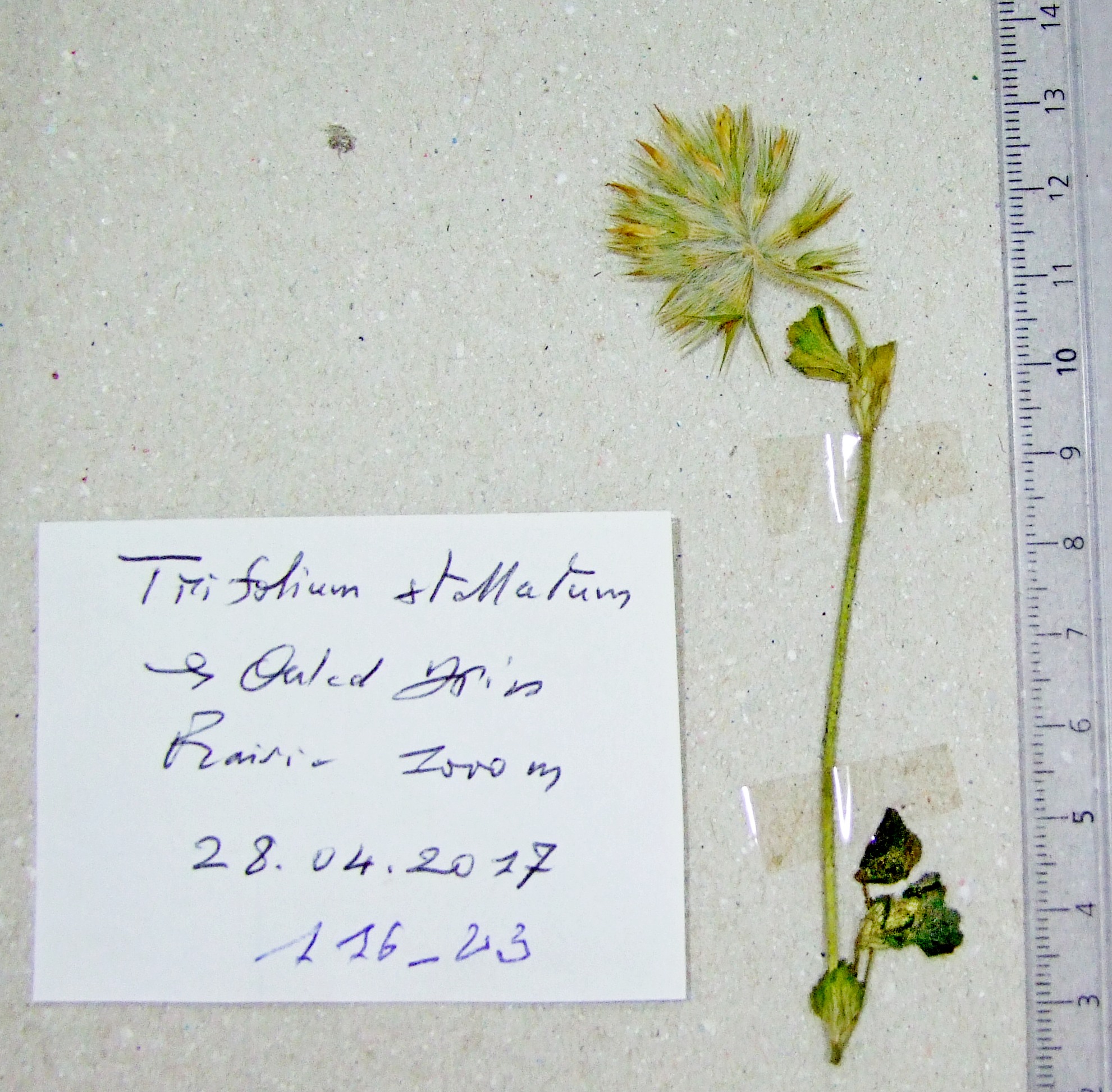 | 116_23 | Leguminosae Trifolium stellatum L. | x=7.946944 y=36.466028 z=1000 m | Ouled Driss (carrefour & pelouse:1000m) Souk Ahras 2017-04-28 |  |