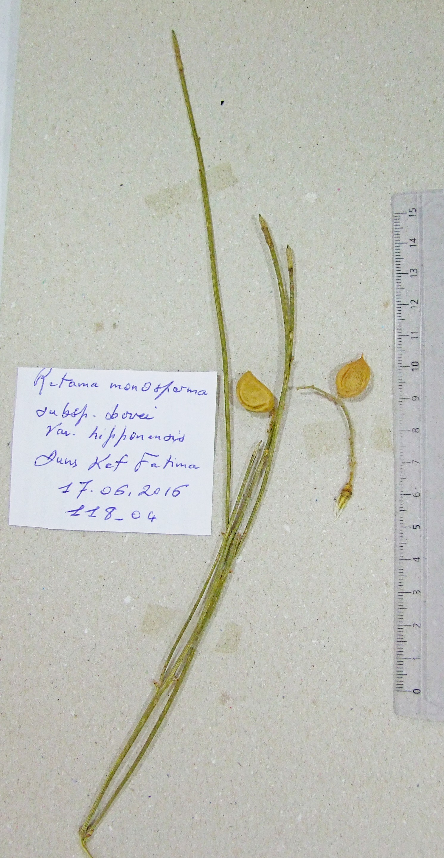 | 081_23 | Leguminosae Genista numidica Spach. subsp. numidica (Spach.) Batt. | x=7.708203 y=36.9473 z=5 m | plage oued el Begrat Annaba 1986-05-02 | |