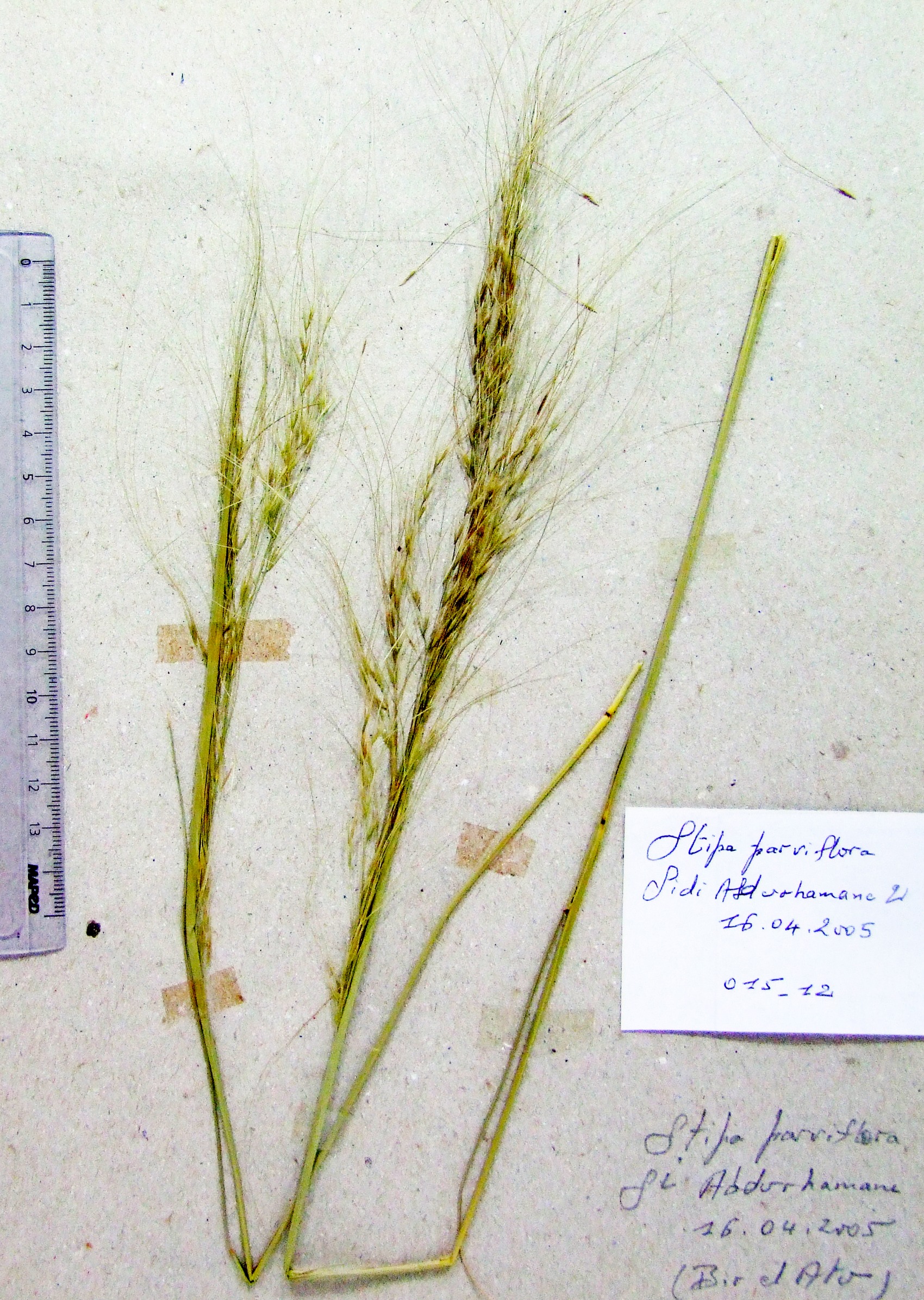 | 015_12 | Poaceae Stipa parviflora Desf. | x=8.105472 y=34.7545 z=844 m | Sidi Abderrhamane 2 Tébessa 2005-04-15 |  |
