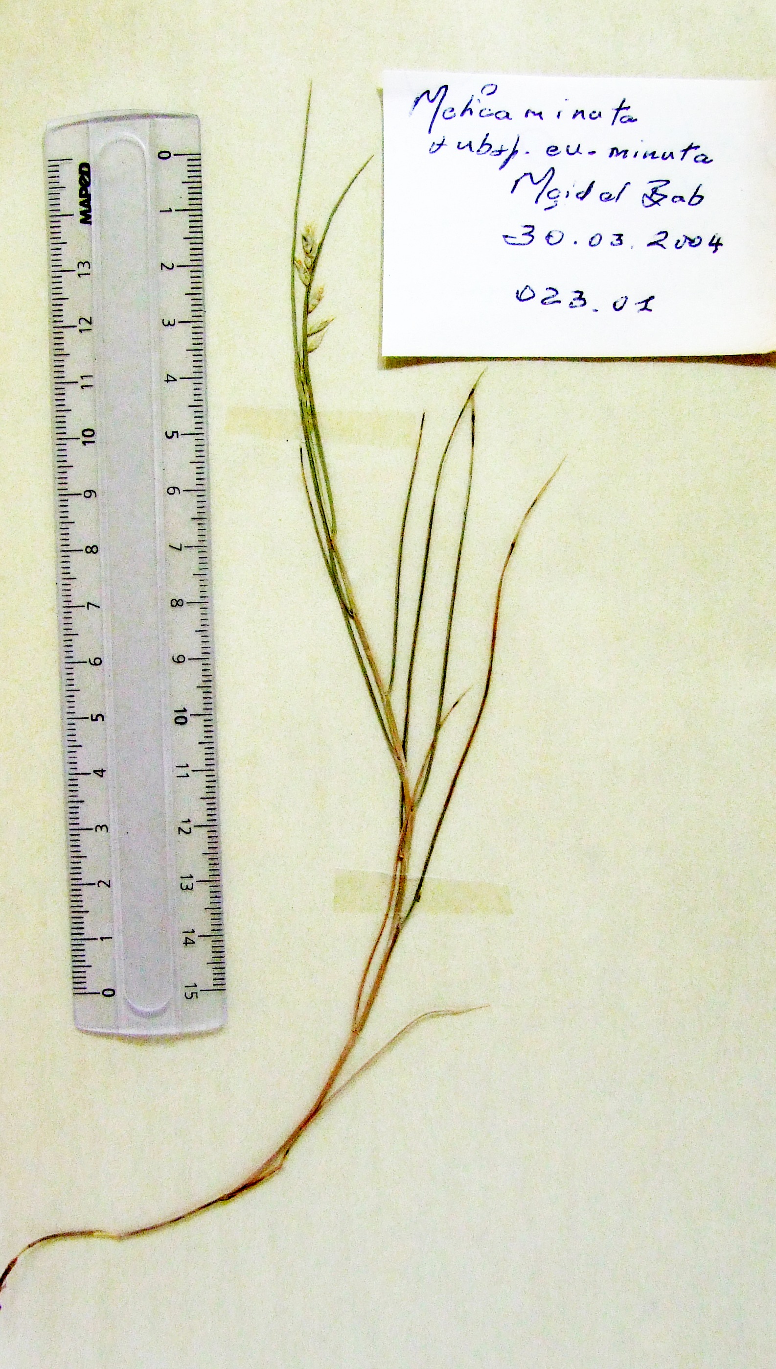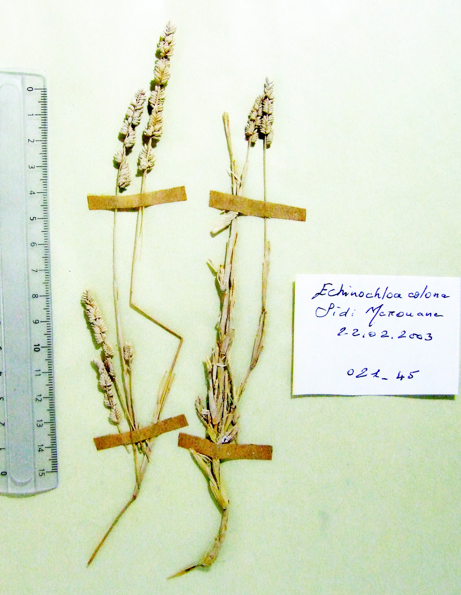 | 023_13 | Poaceae Schismus barbatus (Loefl. ex L.) Thell. subsp. barbatus | x=2.943528 y=30.468767 z=395 m | El Menaa 2 Ghardaïa 1972-11-11 | |