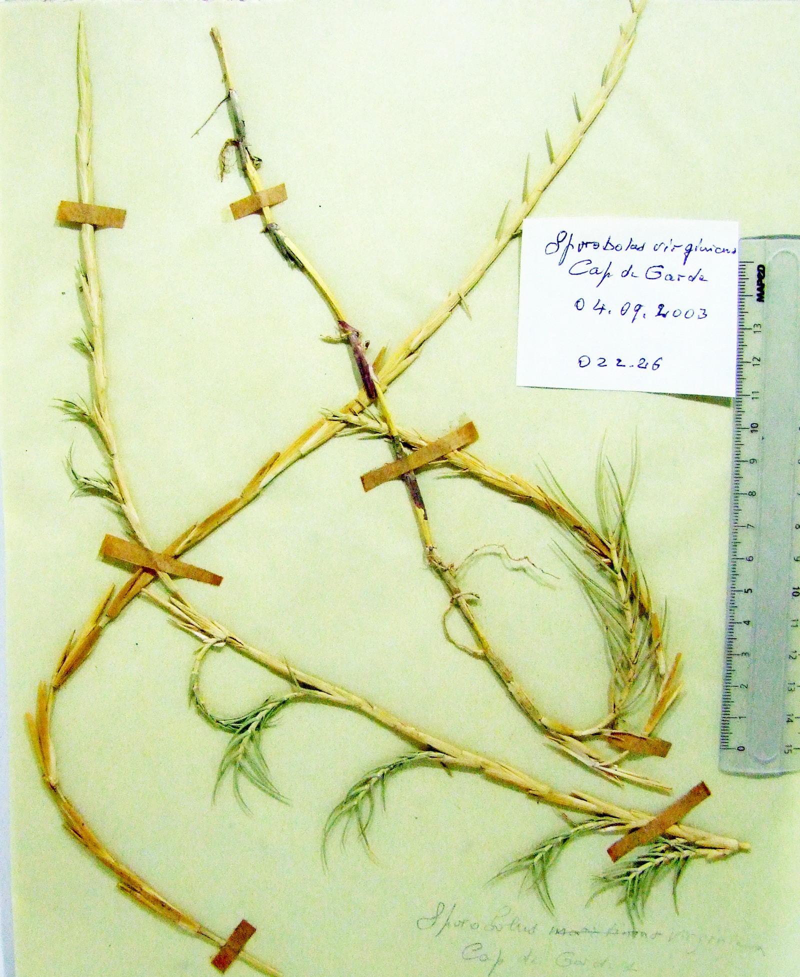 | 044_37 | Poaceae Sporobolus indicus (L.) R. Br. | x=8.309983 y=36.911786 z=1 m | station lac Mellah W El Tarf 2008-08-22 | |
