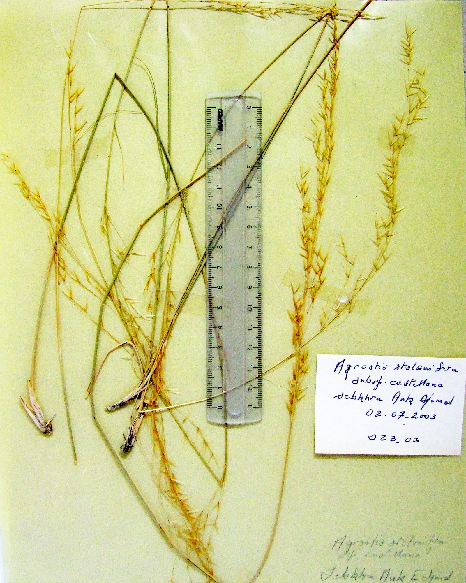 | 023_03 | Poaceae Agrostis castellana Boiss. & Reuter | x=6.873378 y=35.775919 z=824 m | sebkha Ank Eddjmel Oum el Bouaghi 2003-07-02 |  |