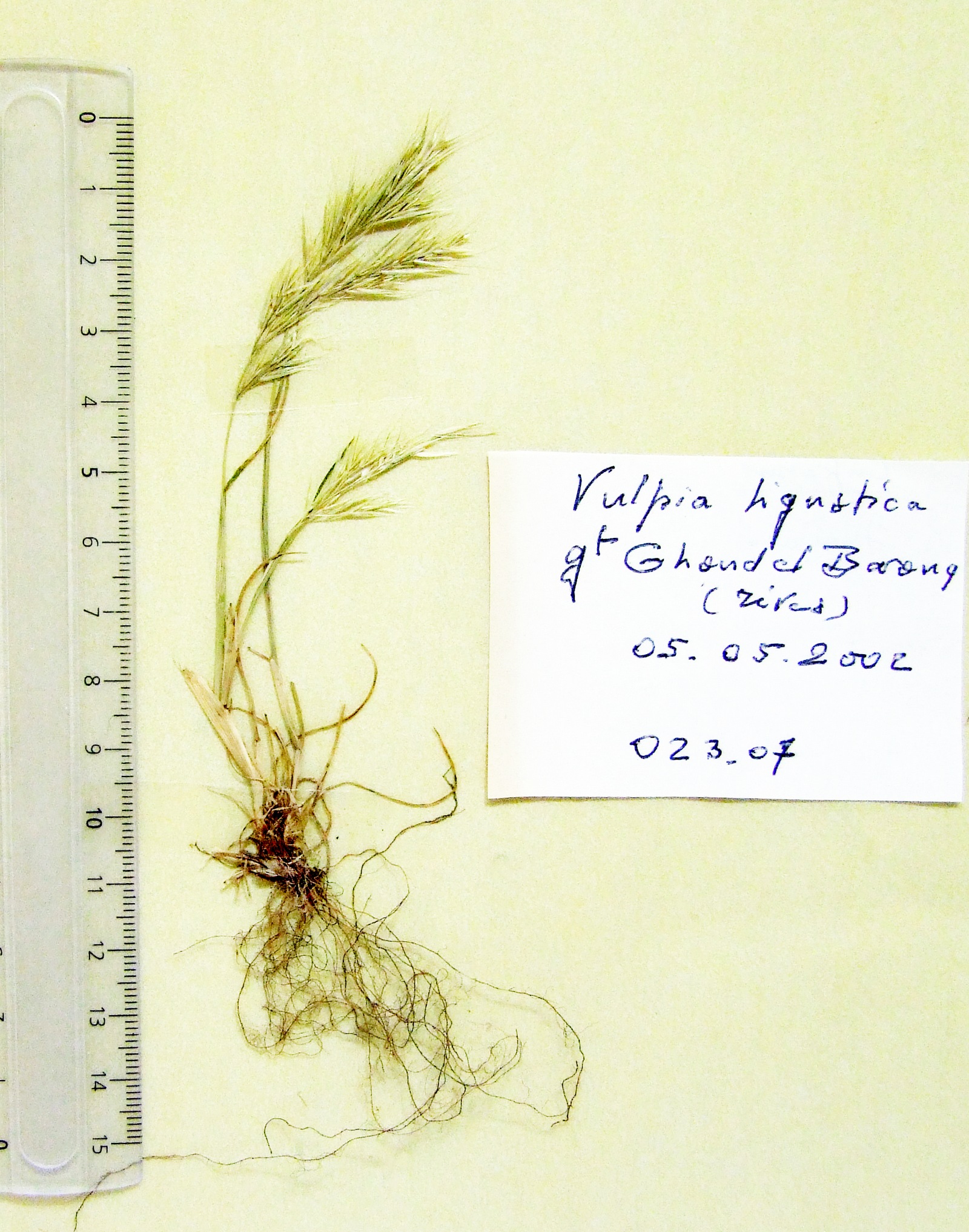 | 023_07 | Poaceae Vulpia ligustica (All.) Link | x=8.010572 y=36.851217 z=43 m | dunes Ghoud el Barouq El Tarf 2002-05-05 |  |