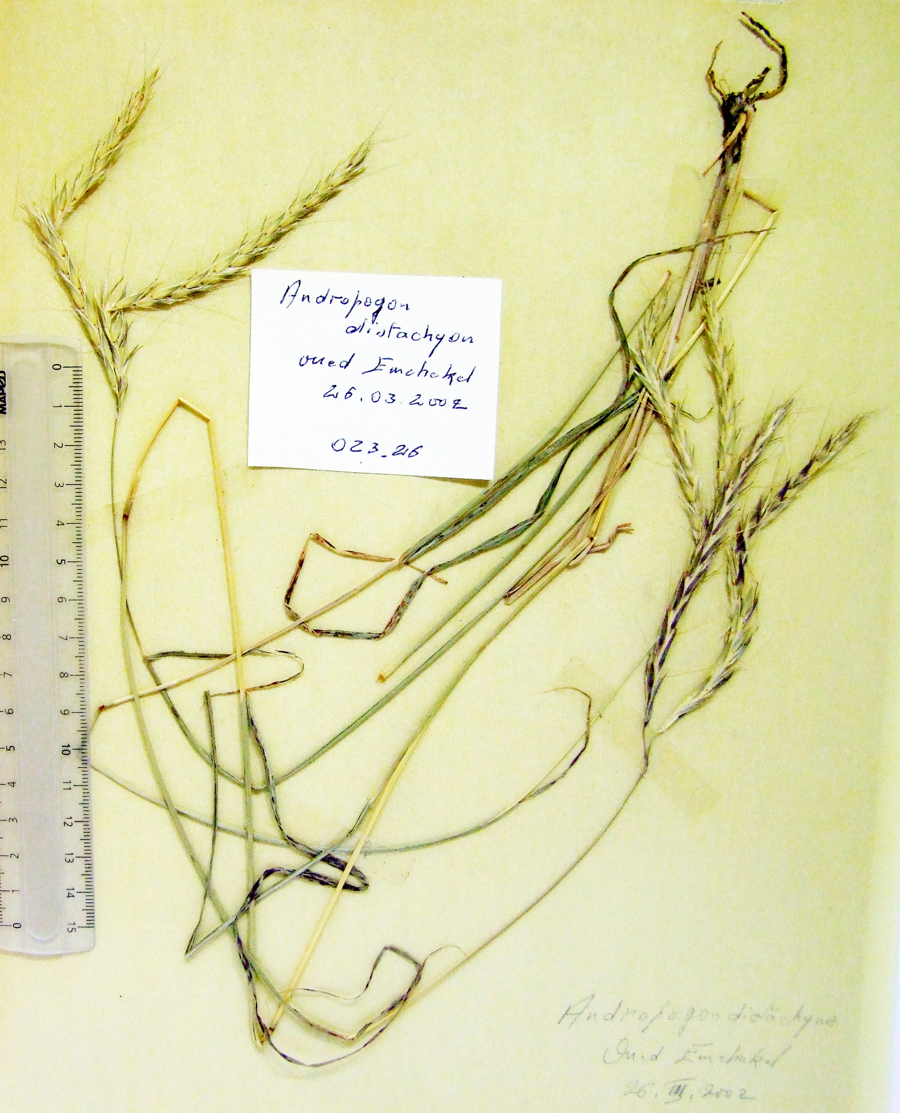| 023_26 | Poaceae Andropogon distachyos L. | x=7.23525 y=36.752194 z=57 m | oued Emchekel Skikda 2002-03-26 |  |