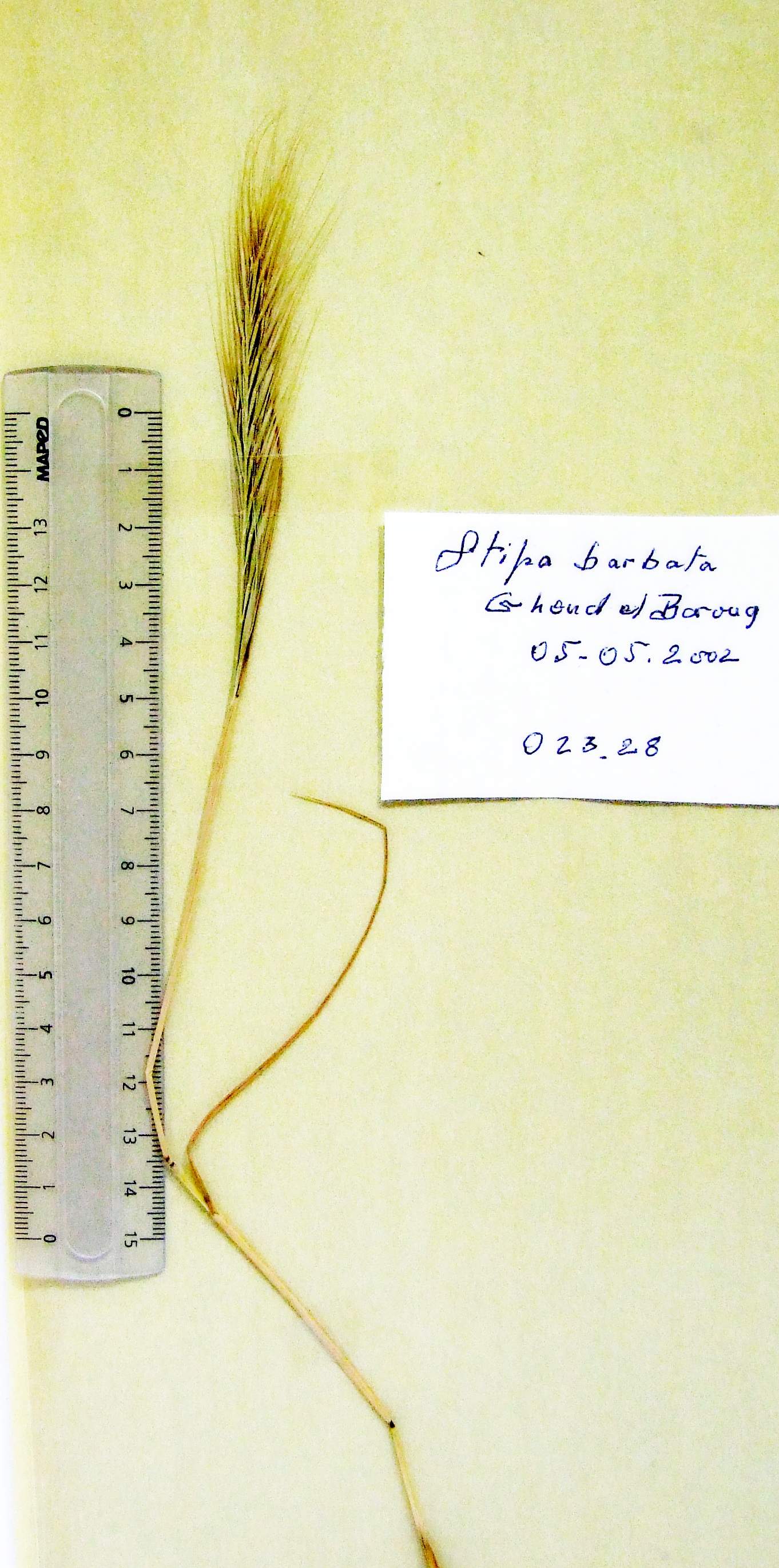 | 016_02 | Poaceae Stipa barbata Desf. | x=6.434431 y=35.706919 z=891 m | Medghacen Batna 2005-05-06 |  |