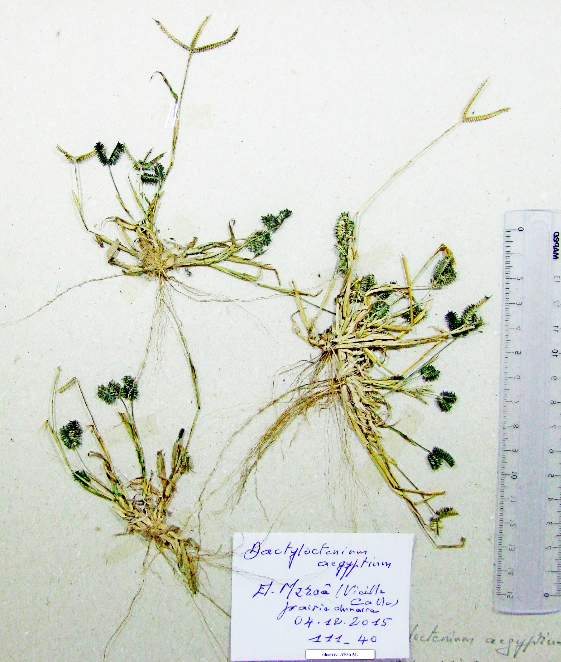 | 022_39 | Poaceae Schismus barbatus (Loefl. ex L.) Thell. subsp. barbatus | x=5.971867 y=34.148114 z=-19 m | Sidi Merouane El Oued 1972-11-11 | |