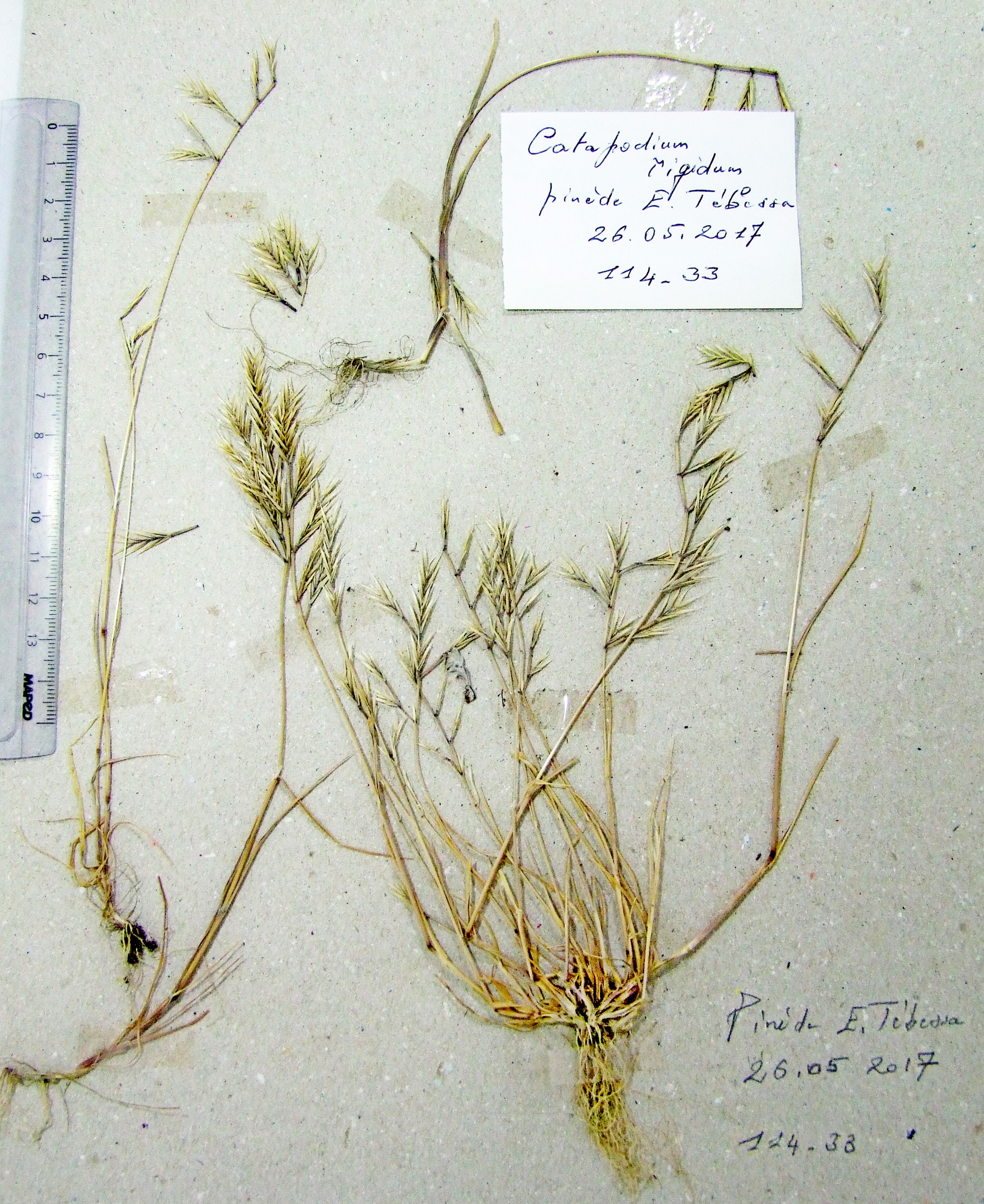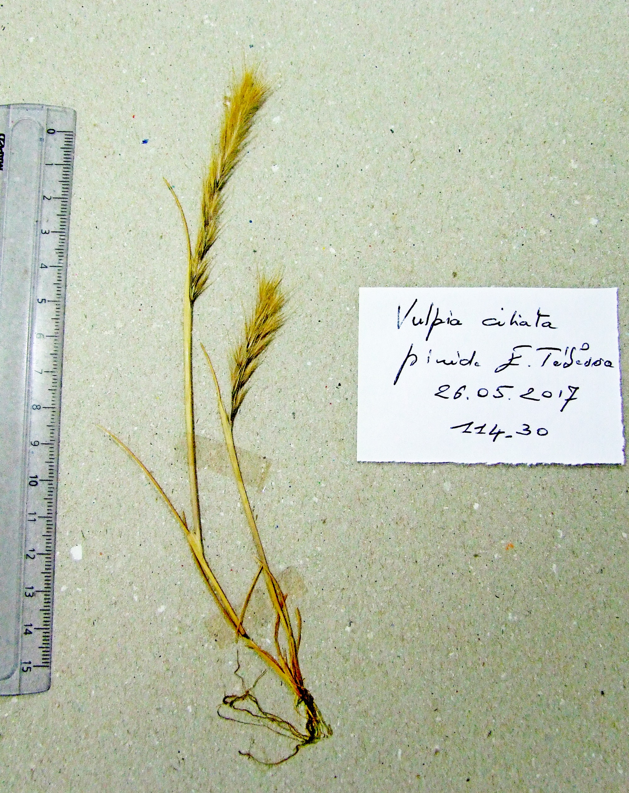 | 114_30 | Poaceae Vulpia cilata Dumort. | x=8.199294 y=35.480292 z=1091 m | Tébessa pinède E Tébessa 2017-05-26 |  |