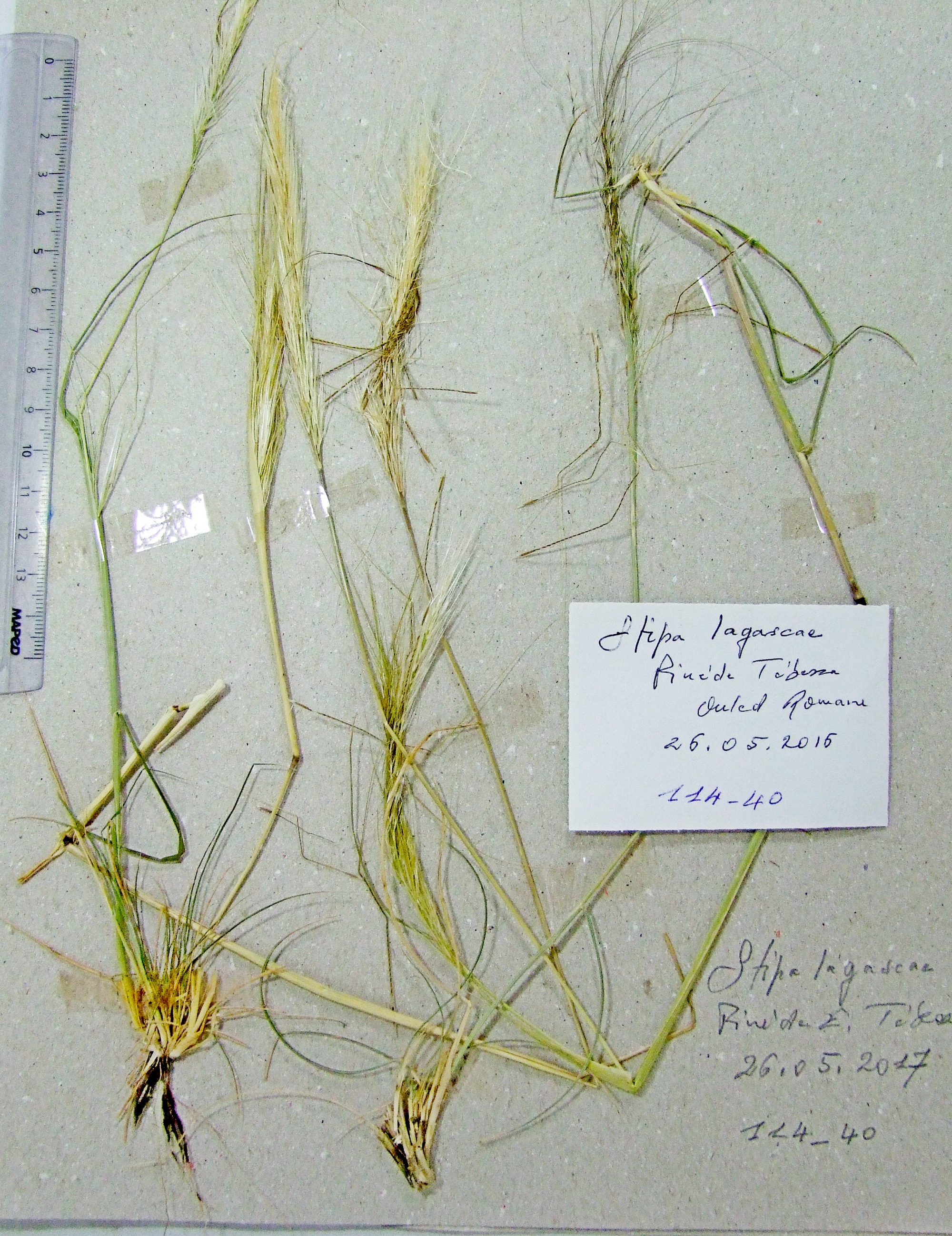 | 114_40 | Poaceae Stipa lagascae Roem. & Schult. subsp. lagascae | x=8.199294 y=35.480292 z=1091 m | Tébessa pinède E Tébessa 2017-05-26 |  |