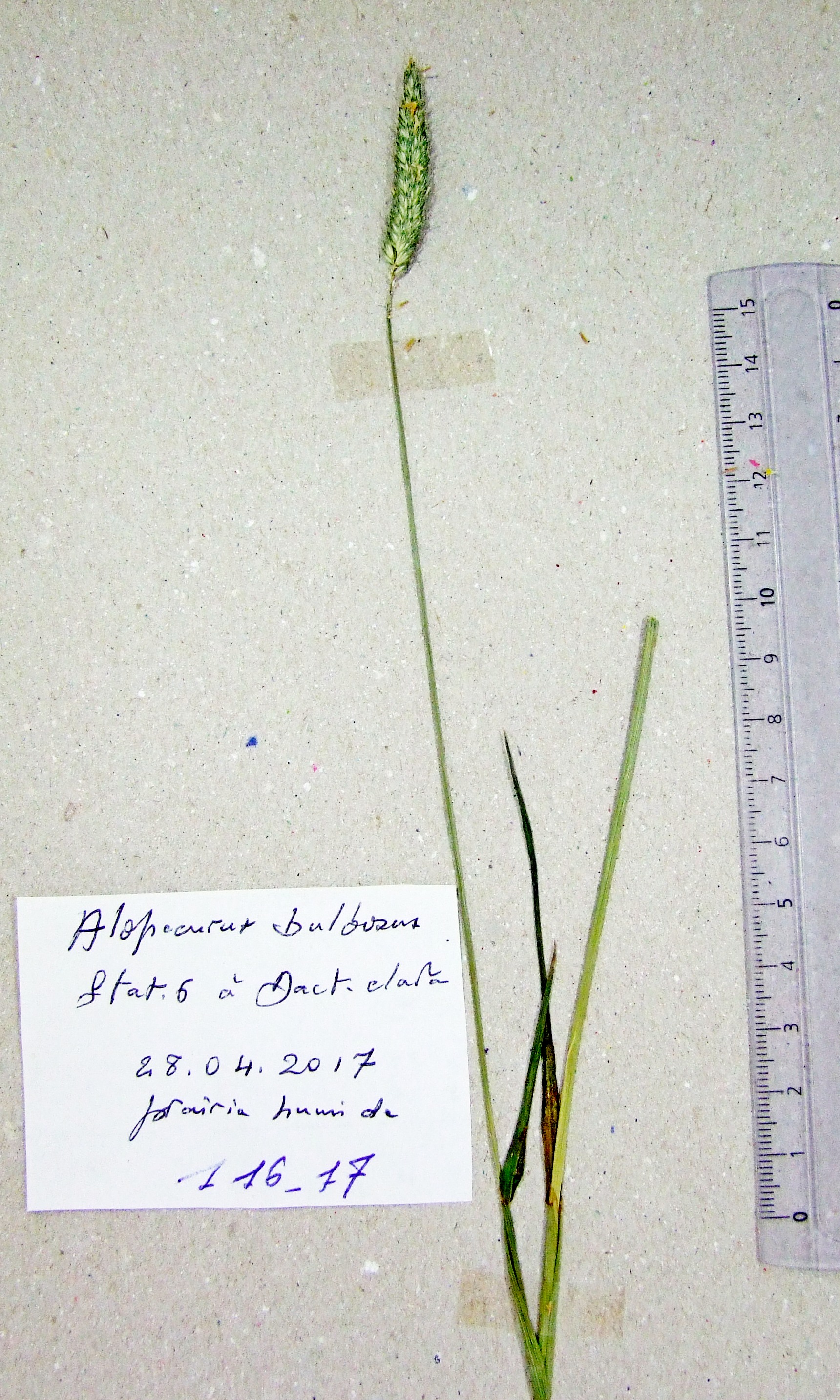 | 116_17 | Poaceae Alopecurus bulbosus Gouan subsp. macrostachyus (Poiret) Trab. | x=7.975306 y=36.354194 z=1046 m | Ouled Driss (stat. à Dactylorhiza) Souk Ahras 2017-04-28 |  |