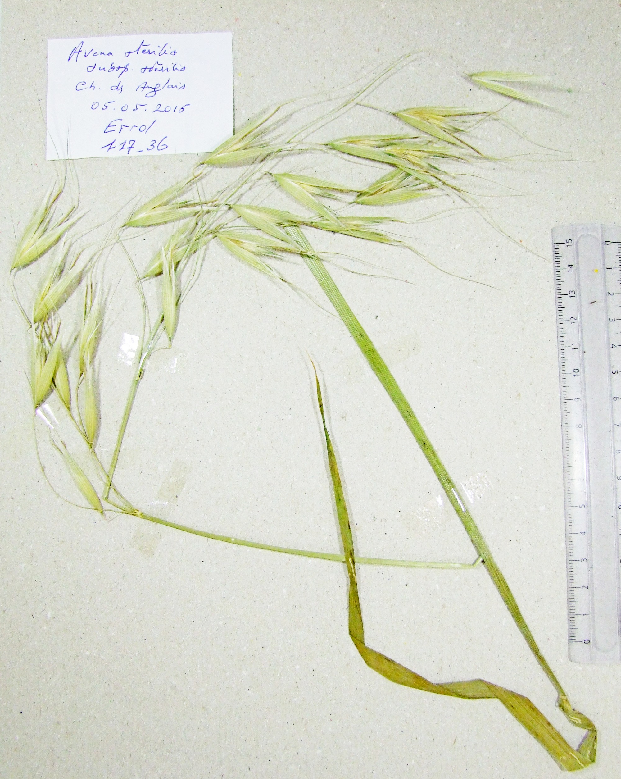 | 116_02 | Poaceae Avena barbata Pott ex Link | x=7.873694 y=35.821 z=686 m | El Aouinet Sud (face silo) Tébessa 2017-03-18 |  |