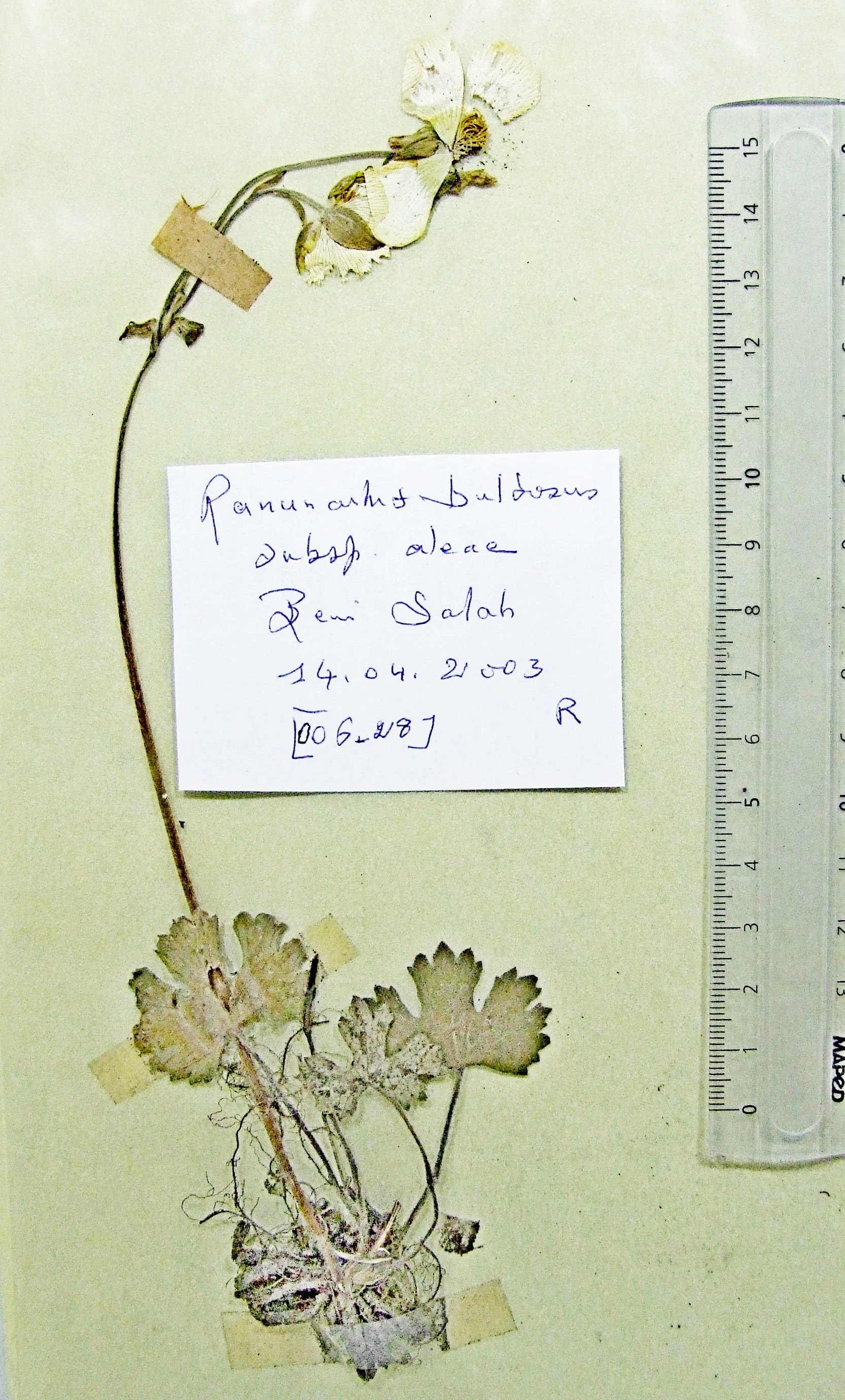 | 064_09 | Ranunculaceae Ranunculus bulbosus L. subsp. aleae (Willk.) Rouy & Fouc. | x=8.009283 y=36.845169 z=46 m | dunes Fedjioua El Tarf 1980-04-04 |  |