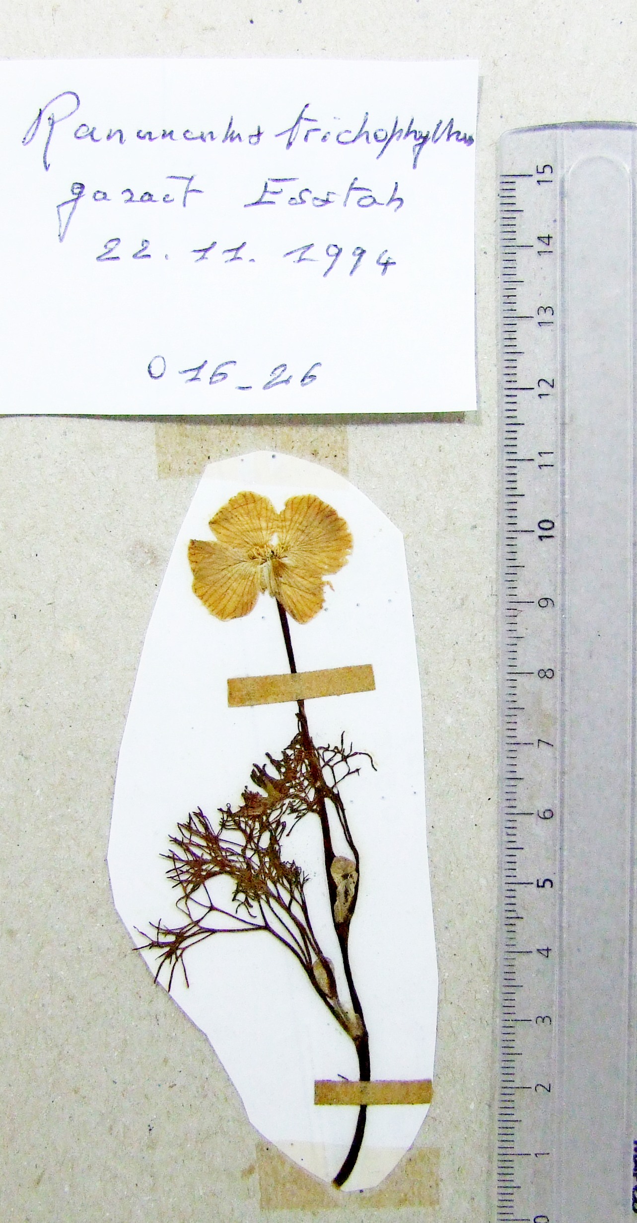 | 016_26 | Ranunculaceae Ranunculus trichophyllus Chaix | x=7.982139 y=36.842528 z=5 m | garaet Esstah El Tarf 1994-11-22 |  |