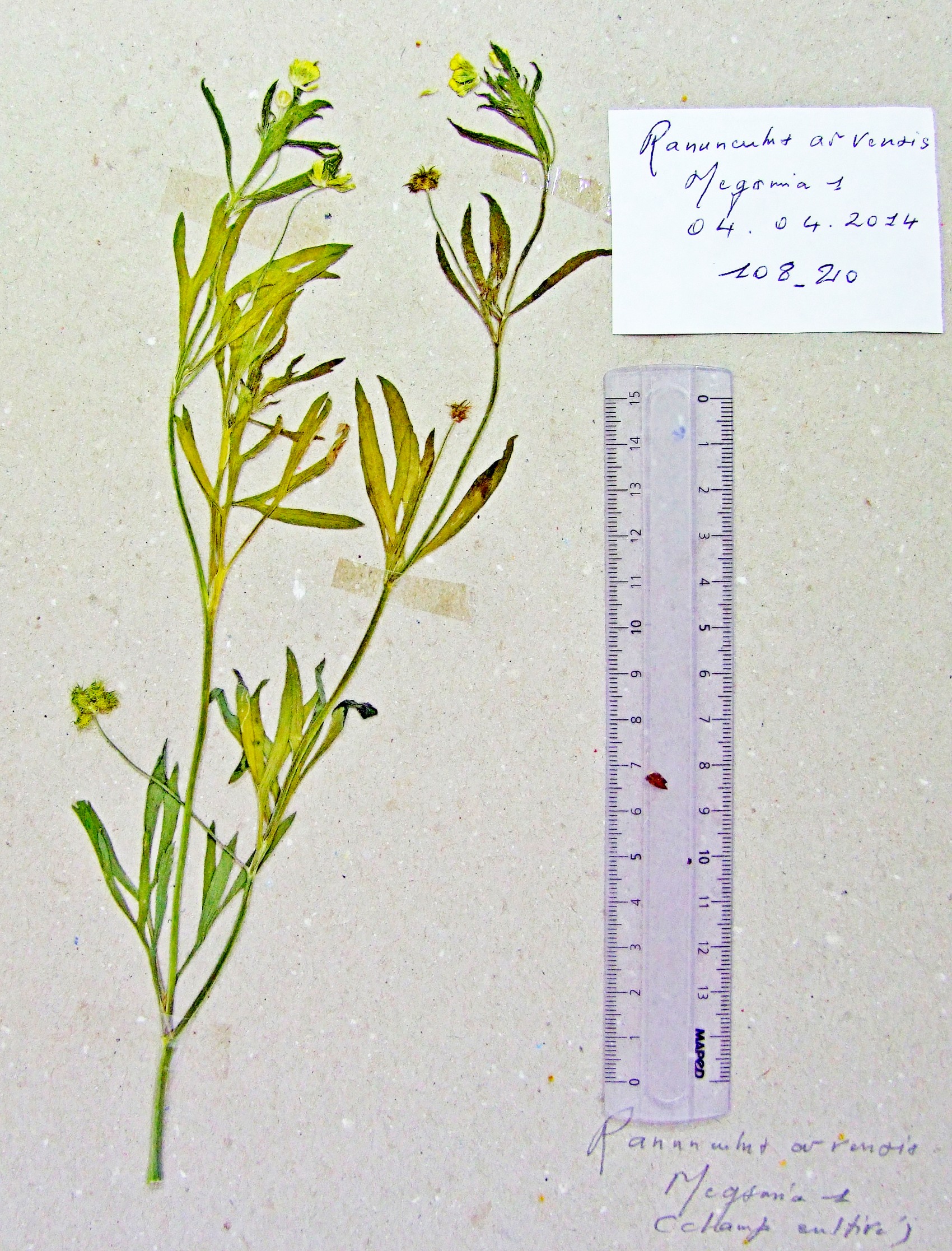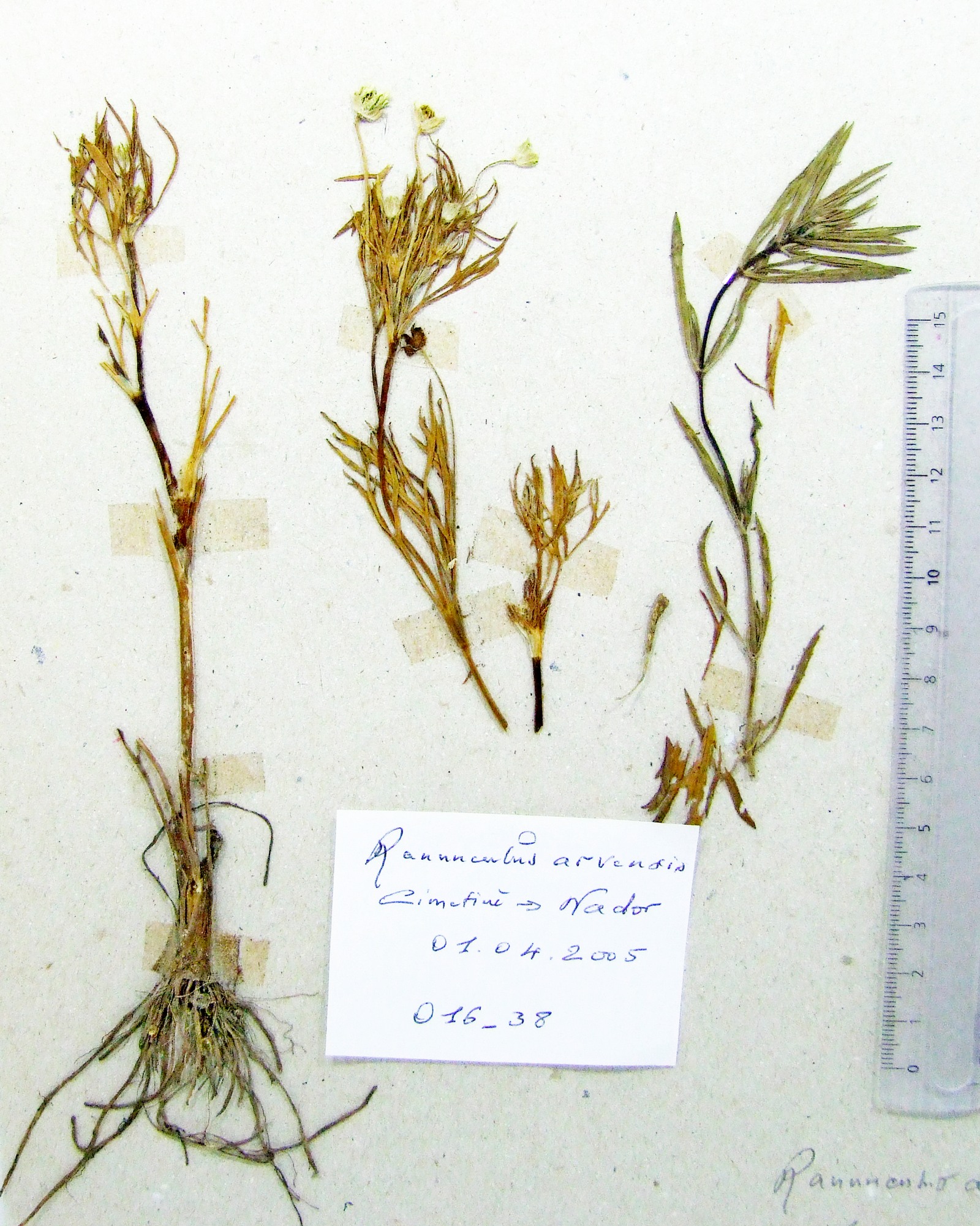 | 027_01 | Ranunculaceae Ranunculus arvensis L. | x=7.805056 y=36.253556 z=703 m | verger noyers Khemissa Souk Ahras 2010-06-04 | |