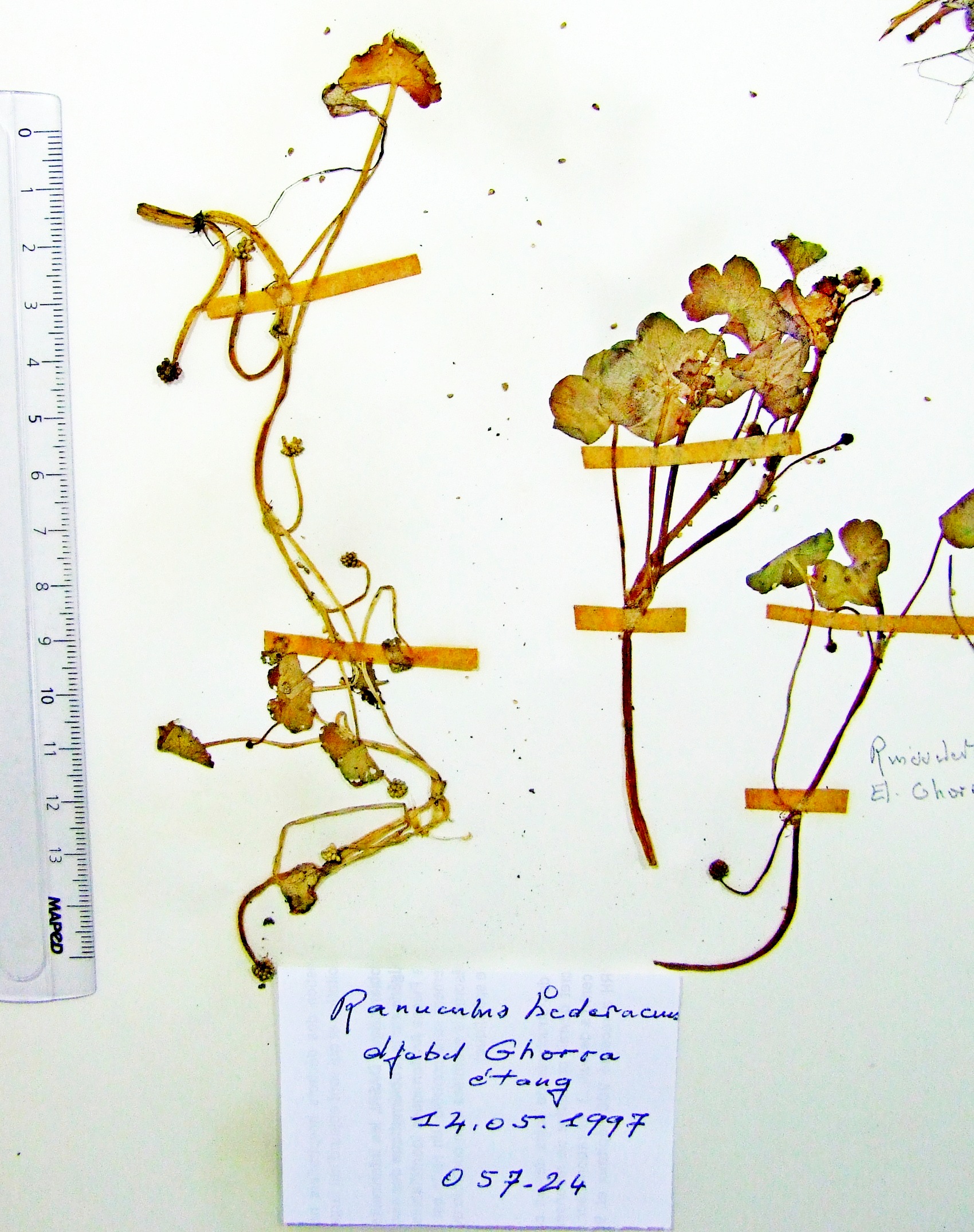 | 057_24 | Ranunculaceae Ranunculus hederaceus L. | x=8.369003 y=36.606711 z=780 m | garaet djebel Ghorra 1 El Tarf 1997-05-12 |  |