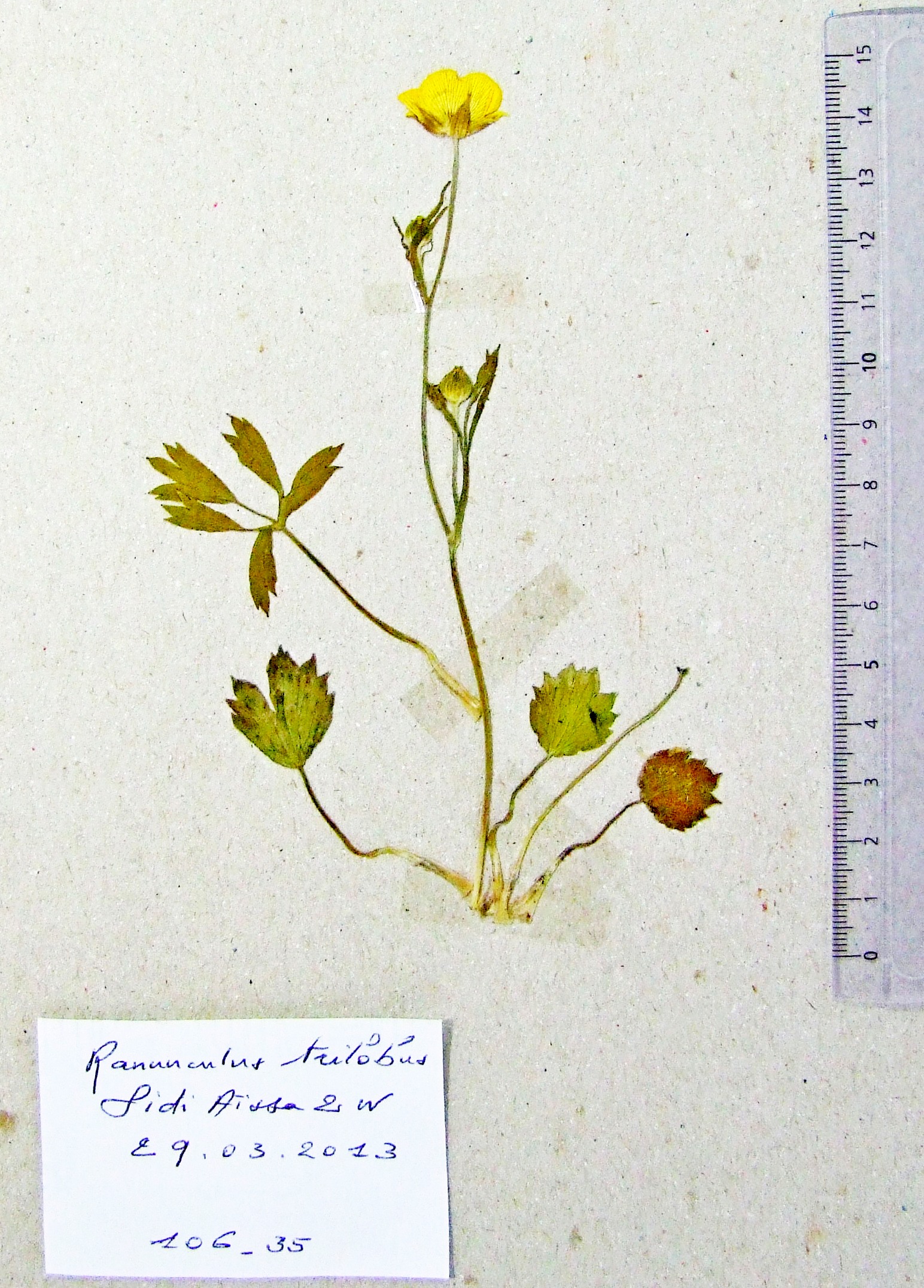 | 064_11 | Ranunculaceae Ranunculus trilobus Desf. | x=8.038494 y=36.734194 z=2 m | El Feïd El Tarf 1980-05-23 |  |