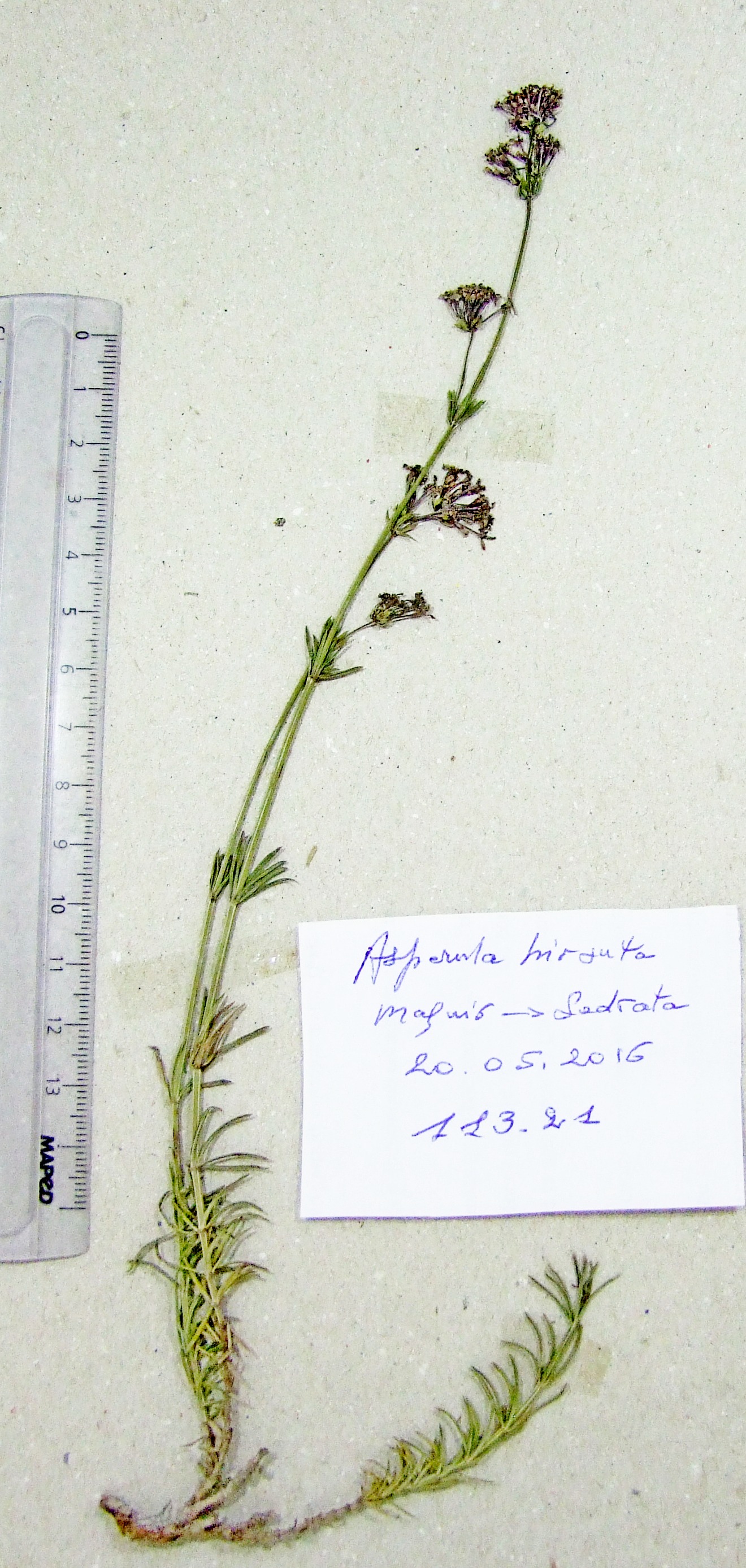 | 113_21 | Rubiaceae Asperula hirsuta Desf. | x=7.536139 y=36.195333 z=1140 m | Sedrata N (reche. Op. atlantica) Guelma 2016-05-20 |  |