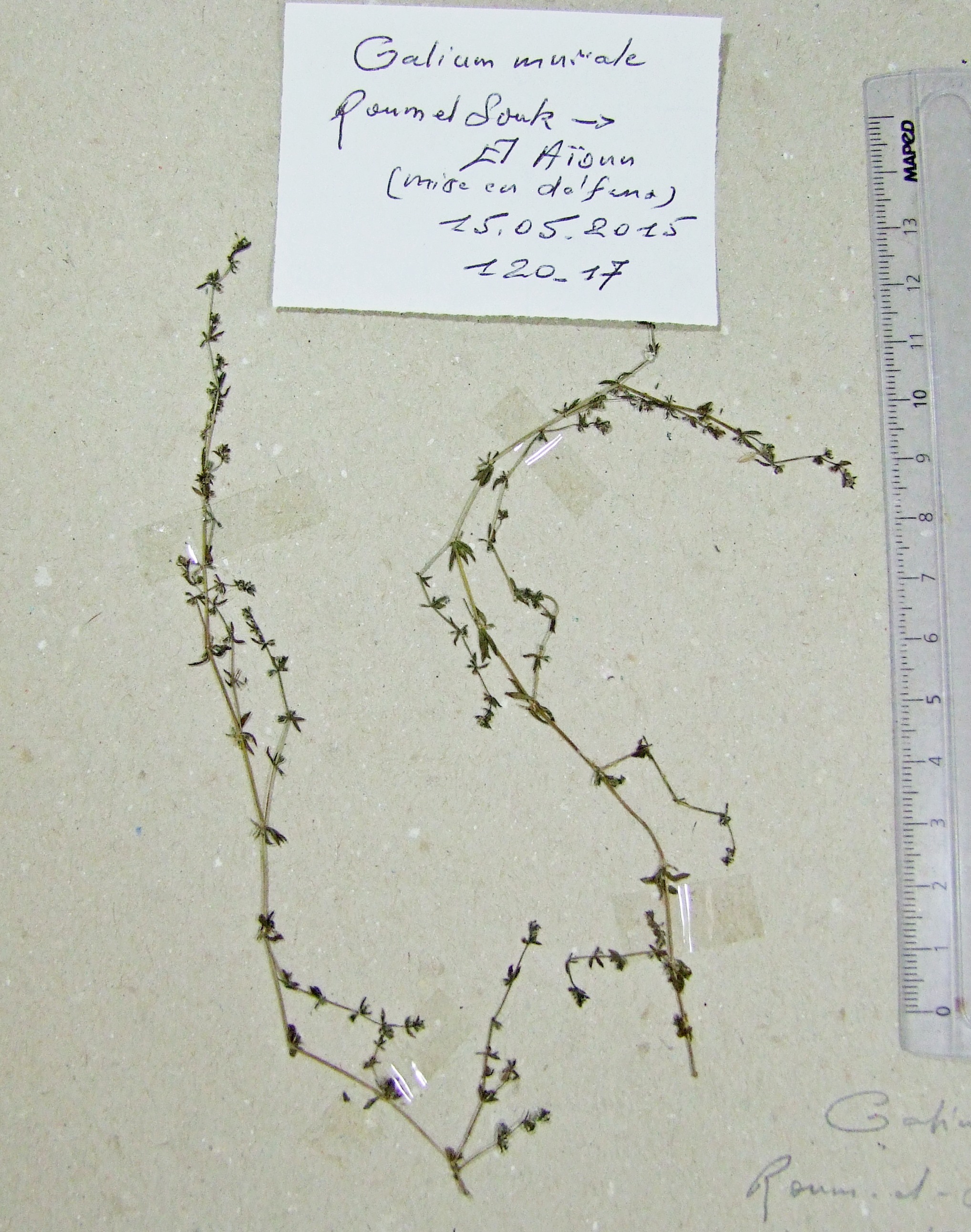 | 120_17 | Rubiaceae Galium murale (L.) All. | x=8.628503 y=36.811853 z=296 m | El Aïoun SE El Tarf 2015-05-15 |  |
