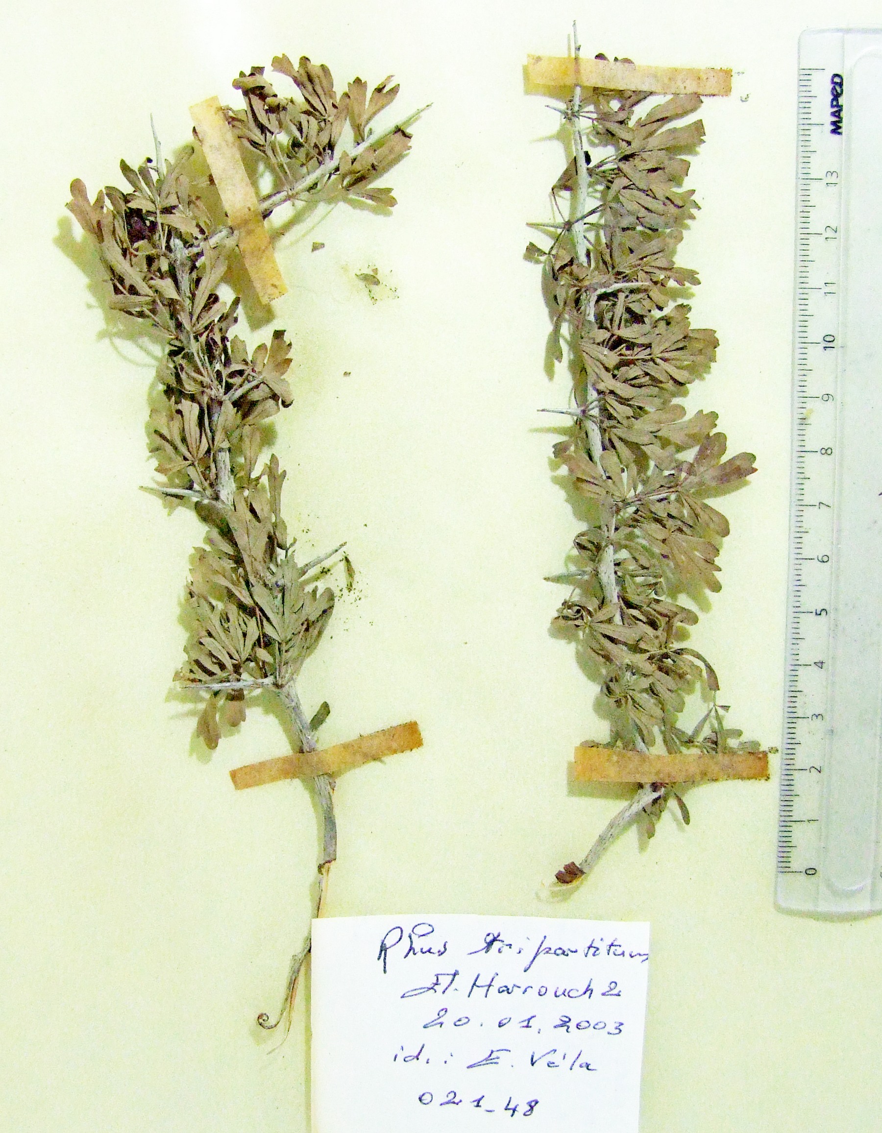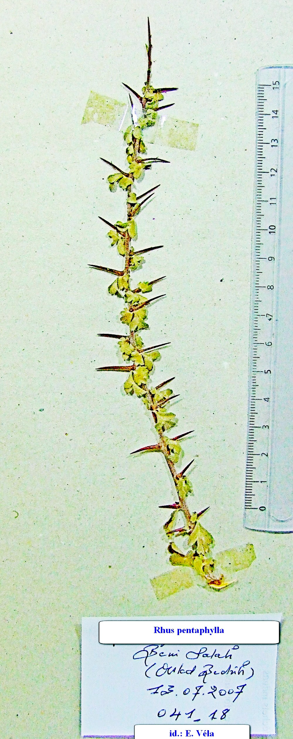| 006_13 | Crassulaceae Sedum multiceps Coss. & Dur. | x=5.28925 y=36.570611 z=218 m | Kefrida Béjaïa 2004-03-29 | |
