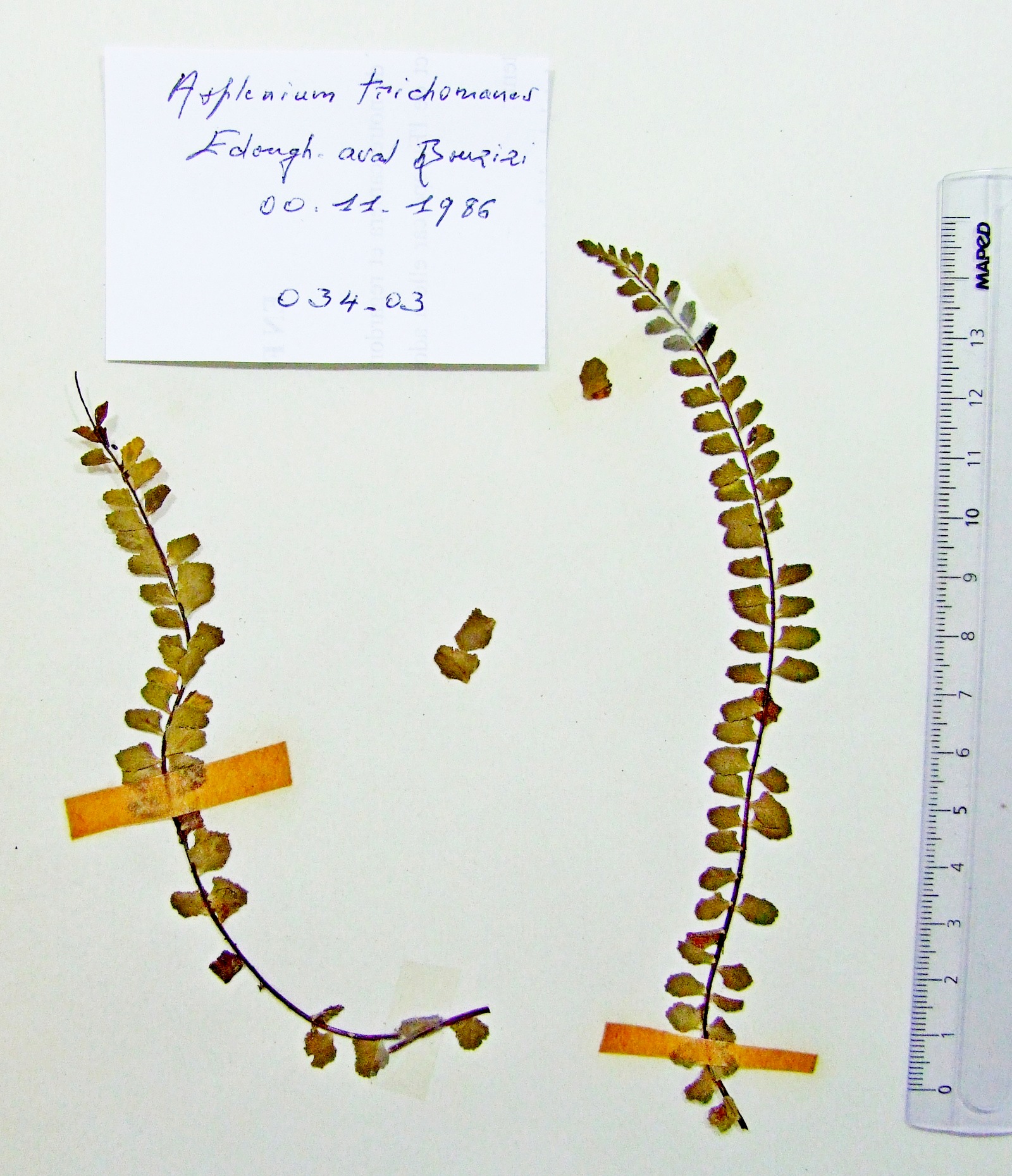 | 034_03 | Aspleniaceae Asplenium trichomanes L. | x=7.640894 y=36.909258 z=881 m | Bouzizi N Annaba NA |  |