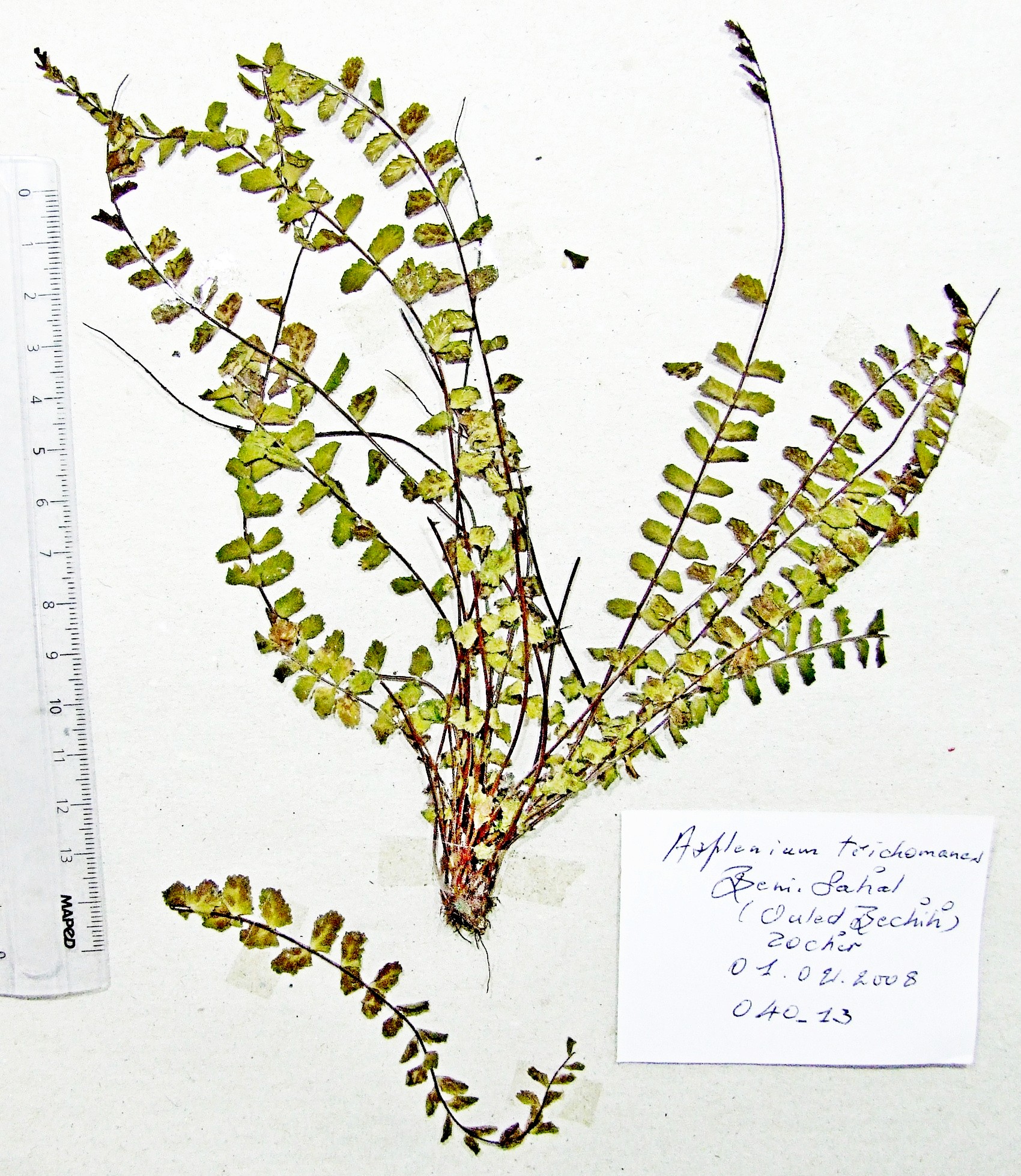 | 030_07 | Aspleniaceae Asplenium trichomanes L. | x=7.648 y=36.913611 z=598 m | djebel Edough 2 Annaba 2006-09-11 | |