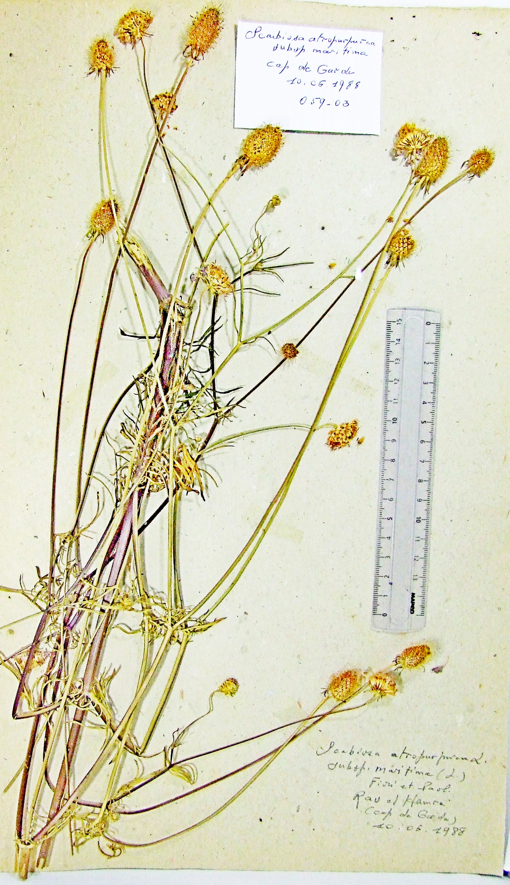| 059_07 | Dipsacaceae Sixalix atropurpurea (L.) Greuter & Burdet subsp. maritima | x=7.780444 y=36.962333 z=64 m | maquis cap de Garde Annaba 1985-08-16 | |