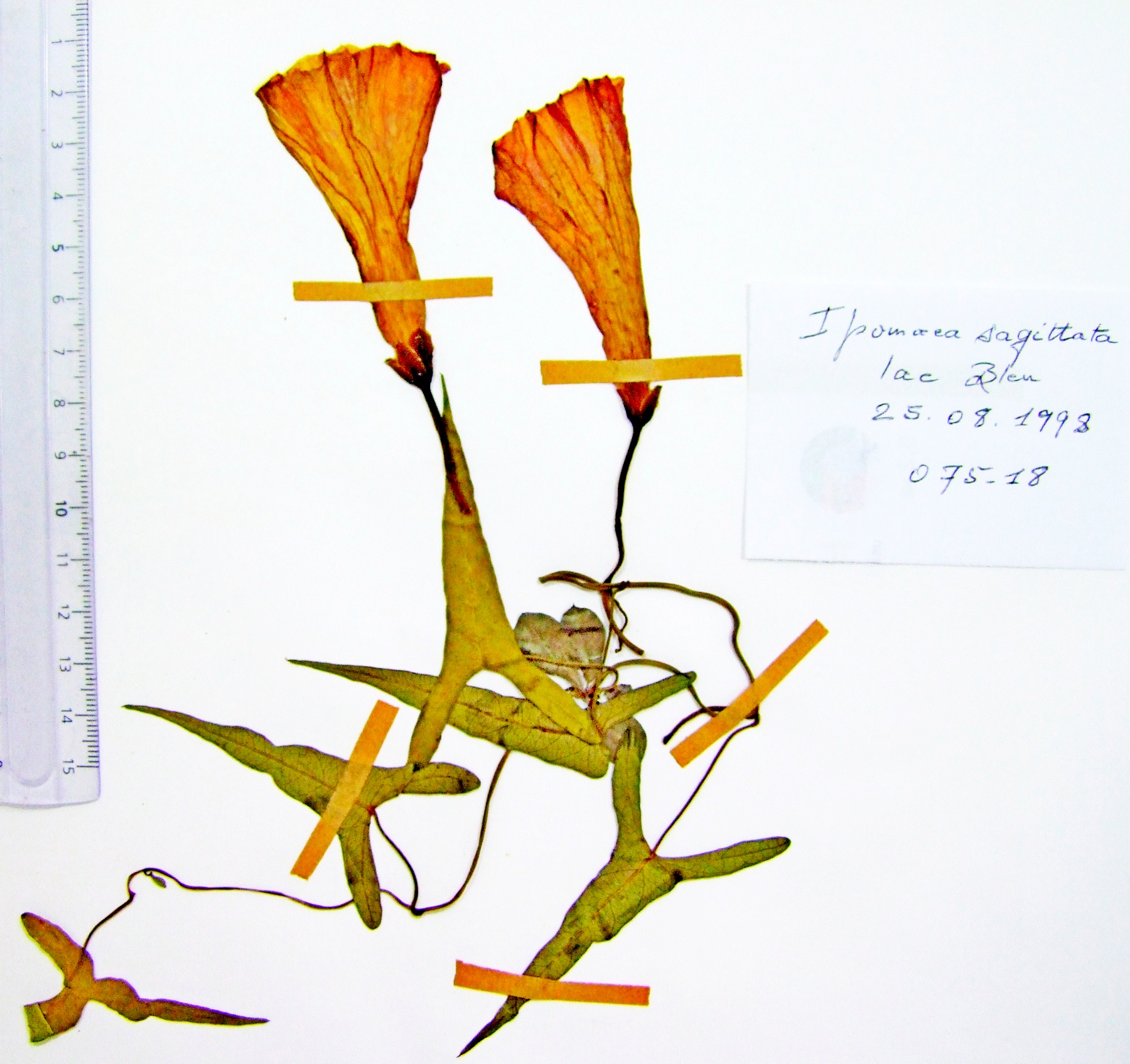 | 075_18 | Convolvulaceae Ipomaea sagittata Poiret | x=8.340806 y=36.910694 z=16 m | lac Bleu El Tarf 1998-08-25 |  |