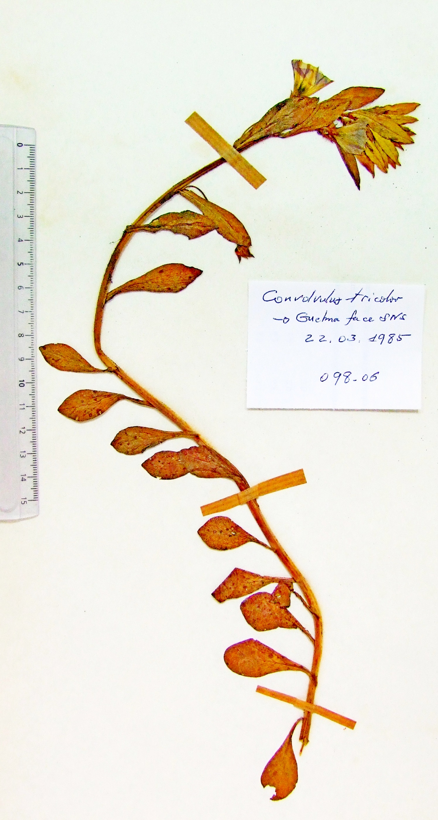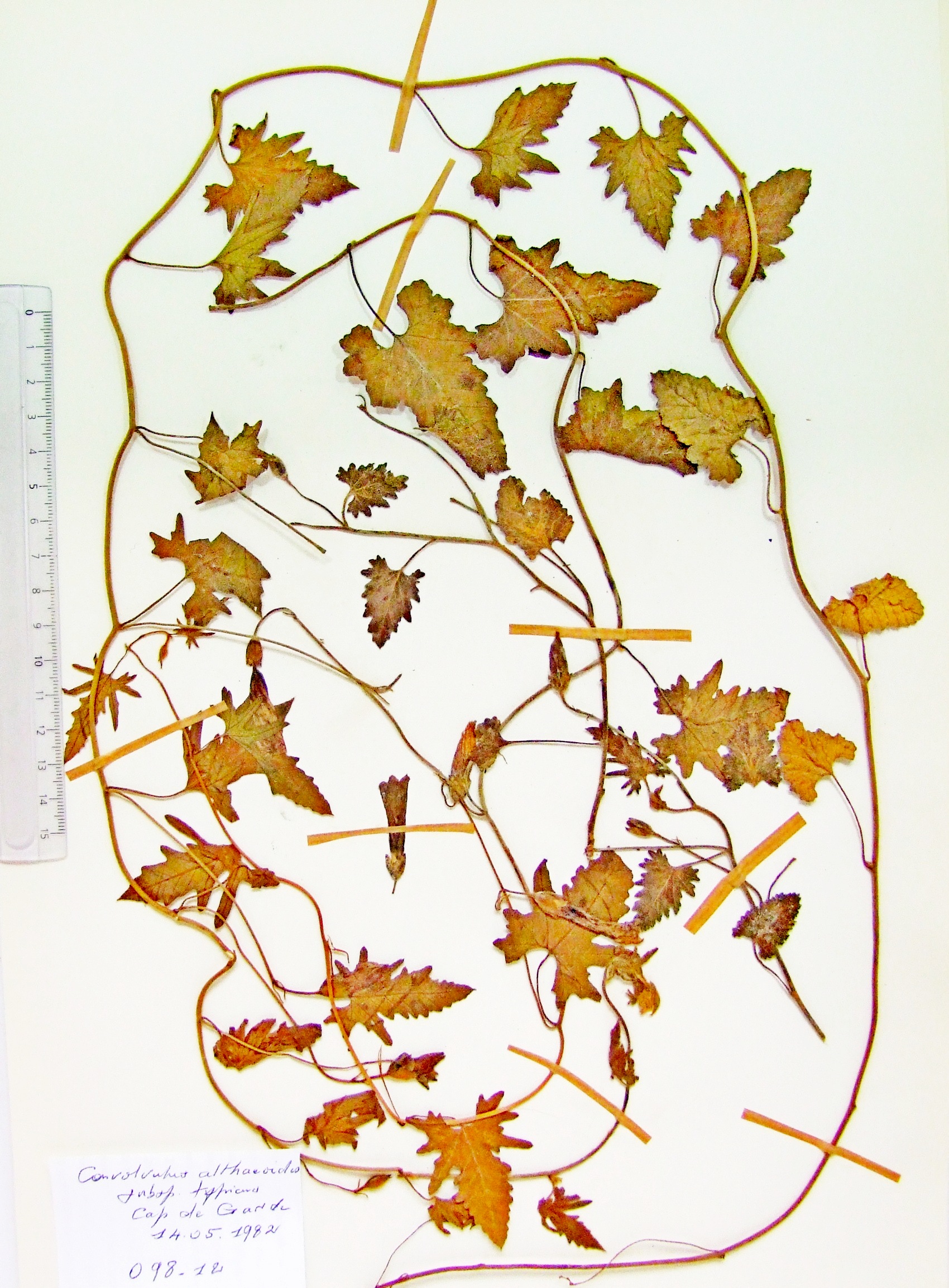 | 097_48 | Convolvulaceae Ipomaea sagittata Poiret | x=8.188833 y=36.853389 z=22 m | aunaie Righia 2 El Tarf 1991-08-16 | |
