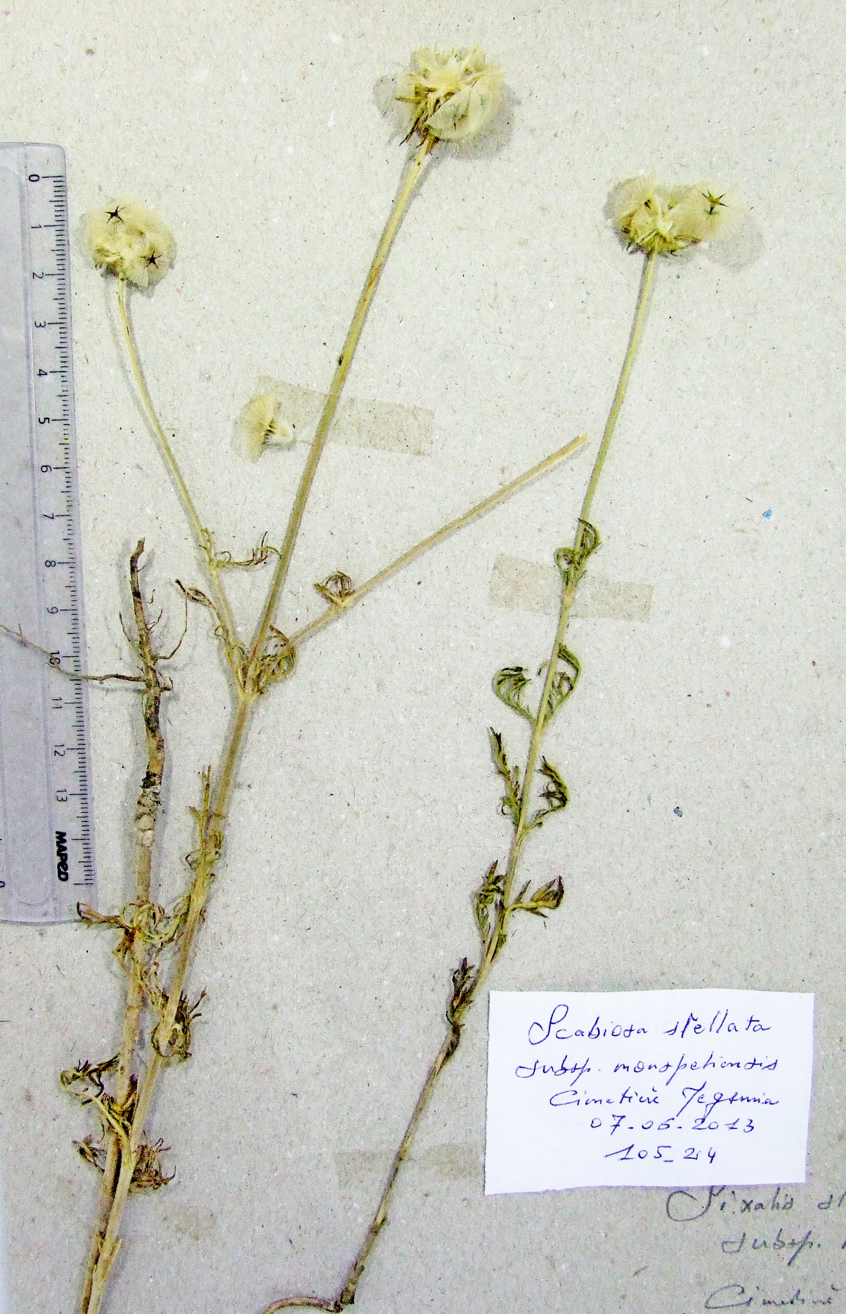 | 027_10 | Dipsacaceae Lomelosia stellata (L.) Raf. | x=7.516972 y=36.213667 z=1135 m | col Sedrata Souk Ahras 2010-06-04 |  |