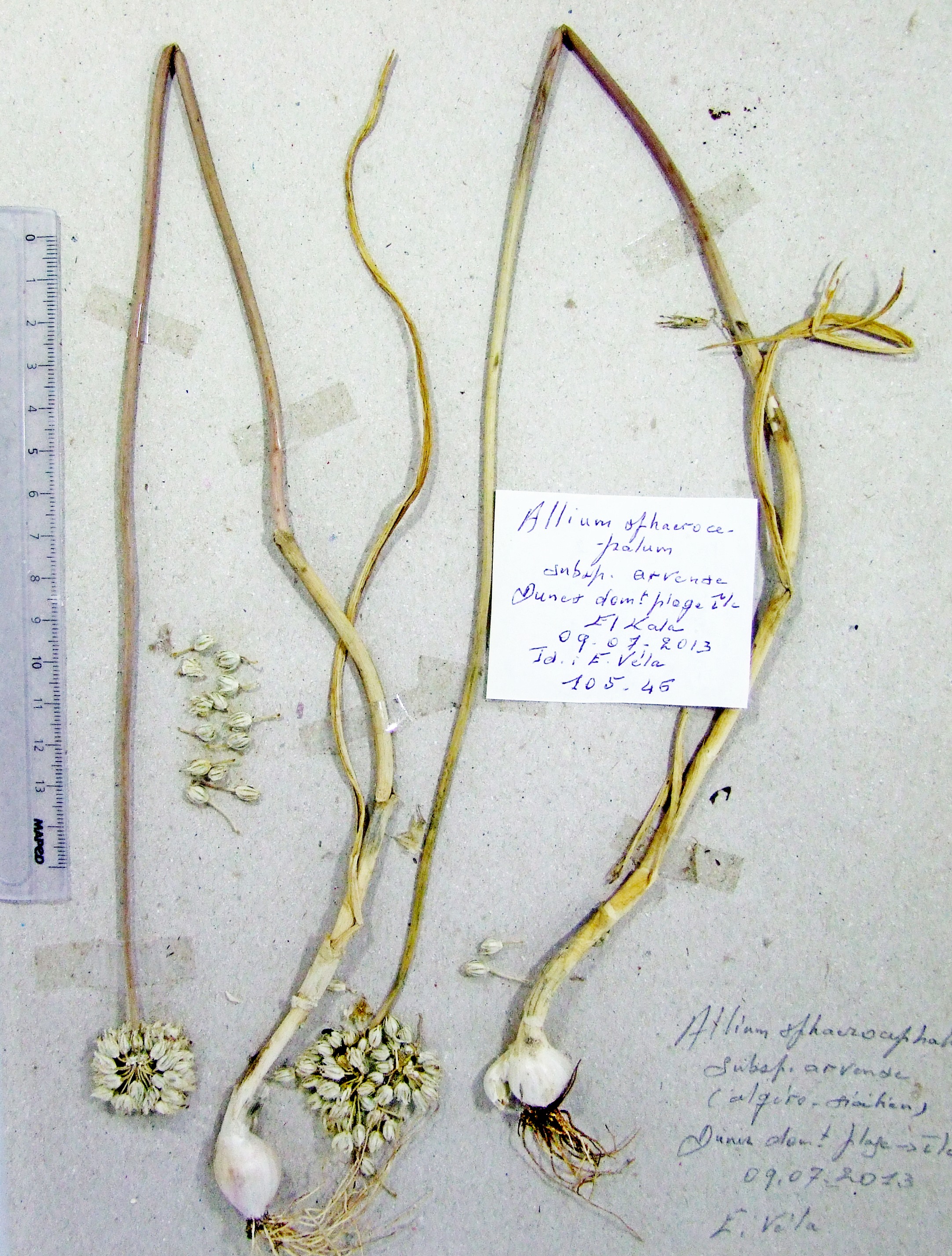 | 105_46 | Alliaceae Allium sphaerocephalum L. subsp. arvense | x=8.50795 y=36.906475 z=3 m | plage El Aouinate El Tarf 2013-07-09 |  |