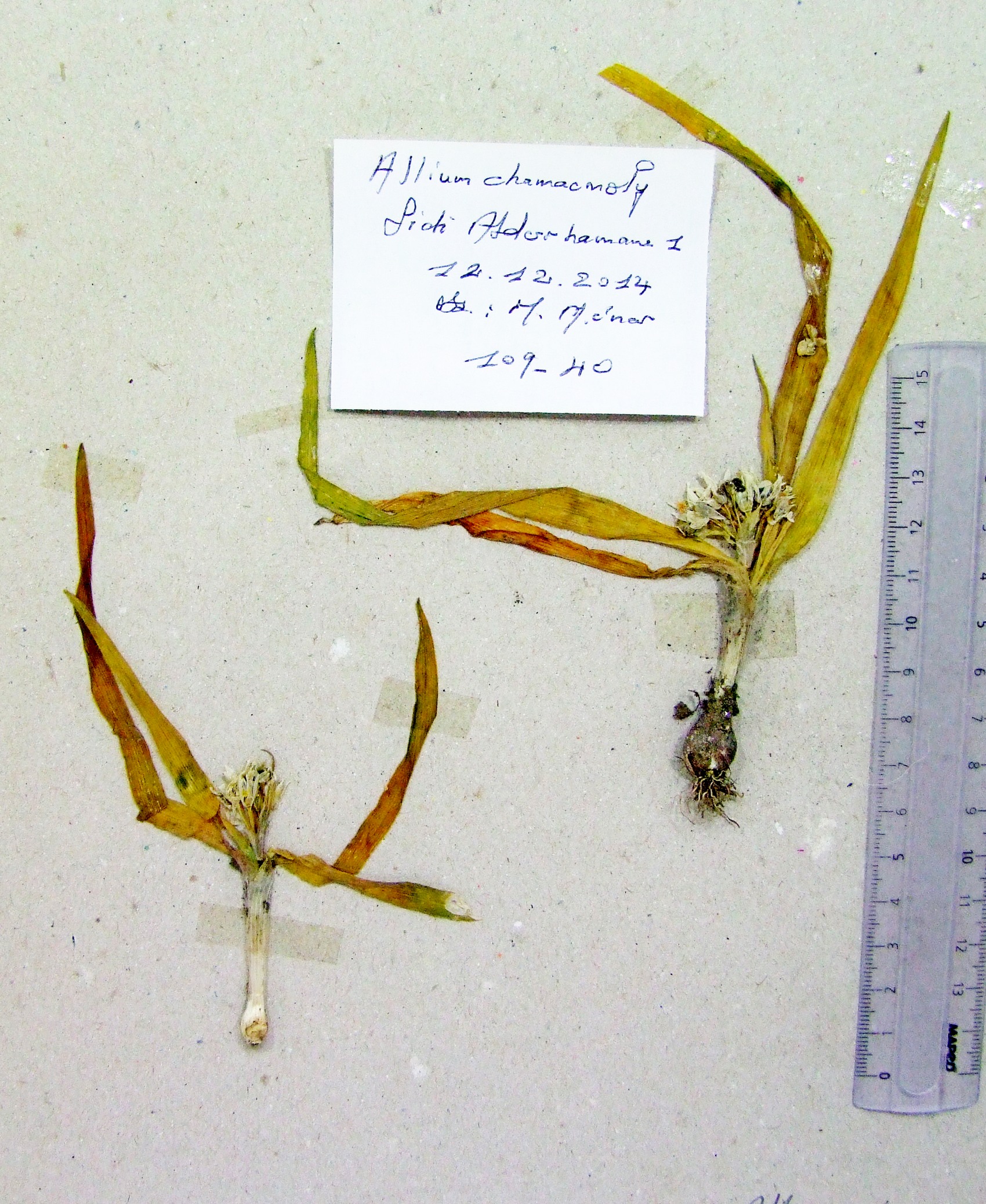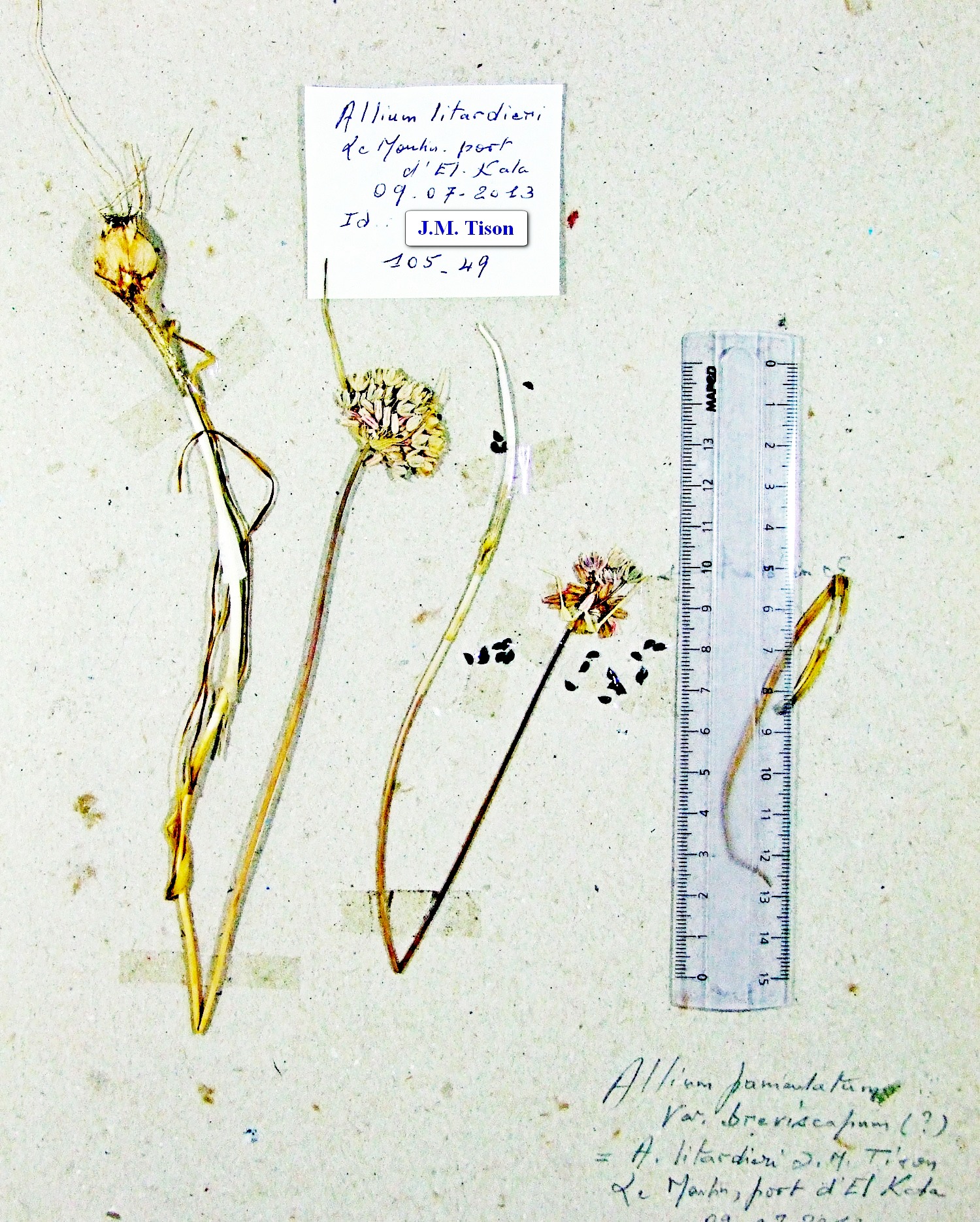 | 109_33 | Alliaceae Allium longispathum Redouté | x=8.130183 y=36.903686 z=5 m | plage Hennaya El Tarf 2014-07-26 |  |