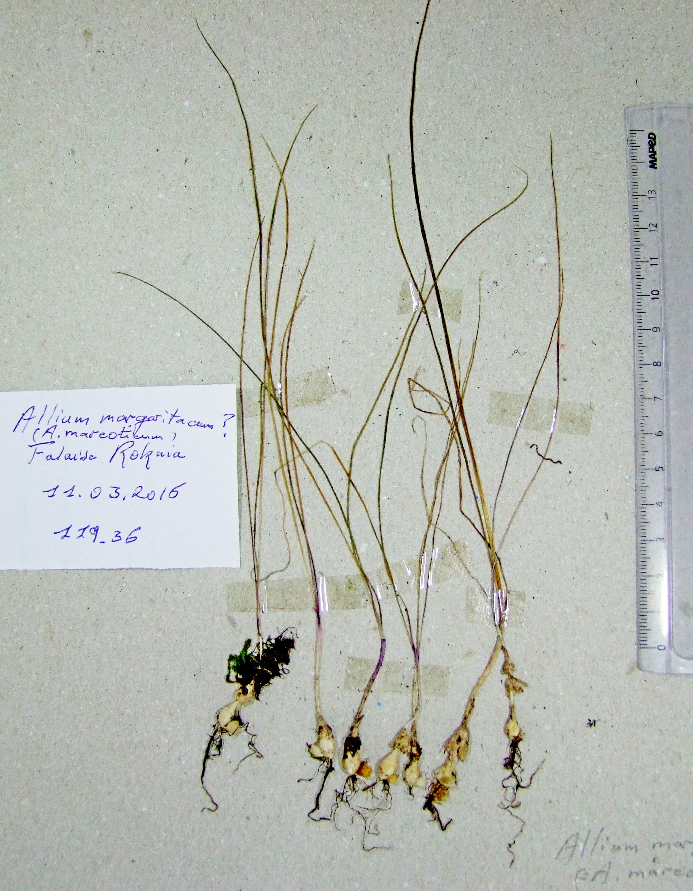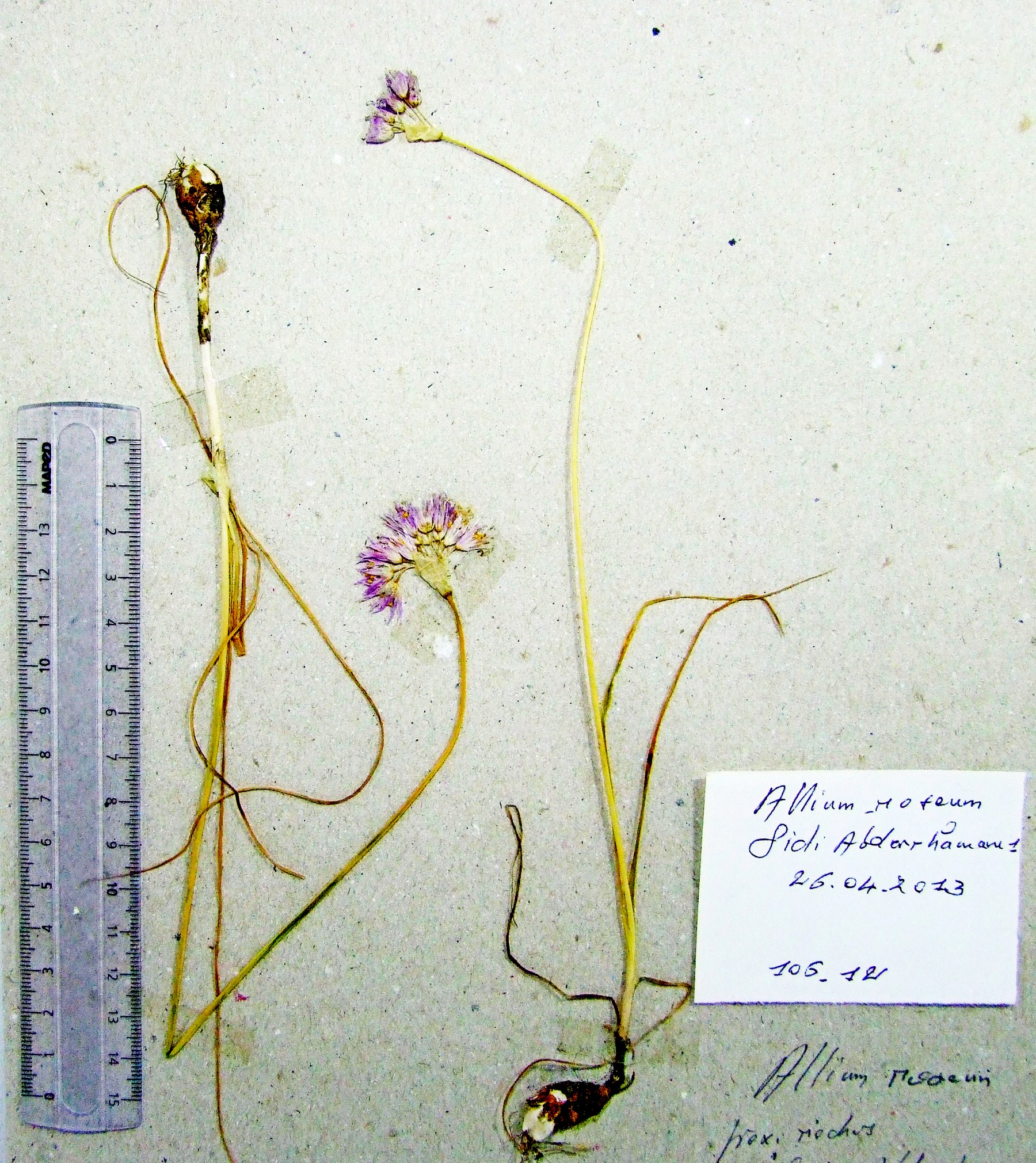 | 119_36 | Alliaceae Allium mareoticum Bornm. & Gauba | x=7.235389 y=36.520194 z=391 m | Roknia 1 Guelma 2016-03-11 |  |